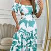 Женское платье с открытыми плечами и эластичной талией, лето 2025 г. - струящееся длинное платье А-силуэта для отпуска с сексуальными вырезами и завязками — купить товар онлайн с бесплатной доставкой до всему миру!