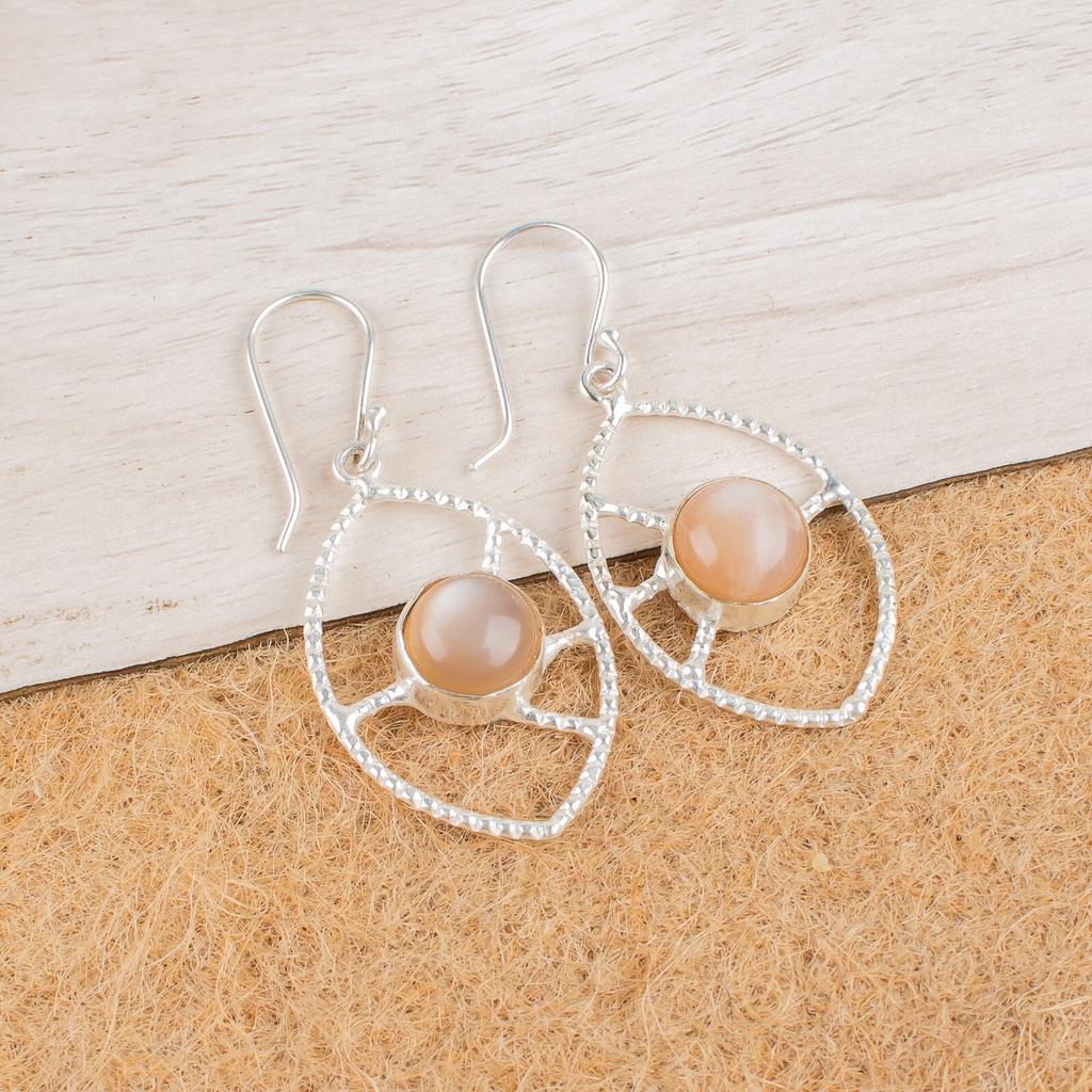 Персиковый Лунный Камень Драгоценный Камень Серебро 925 пробы Ювелирные Изделия Ручной Работы Серьги 2,00" EE-52-30