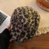 Ретро леопардовый принт плюшевая кепка вперед осенне-зимняя шляпа женская большой обхват головы показывает лицо стиль маленькой горячей девочки берет