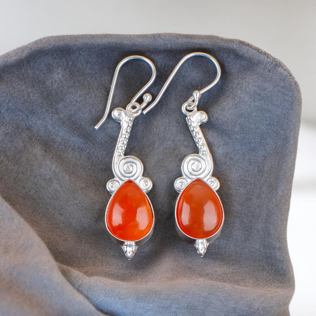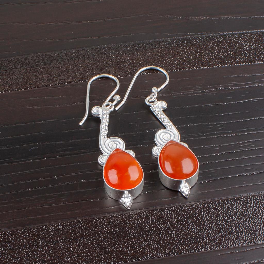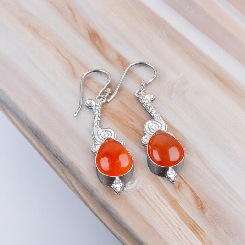 Настоящий сердолик 925 стерлинговое серебро дизайнерские ювелирные изделия серьги для нее EE-37-24