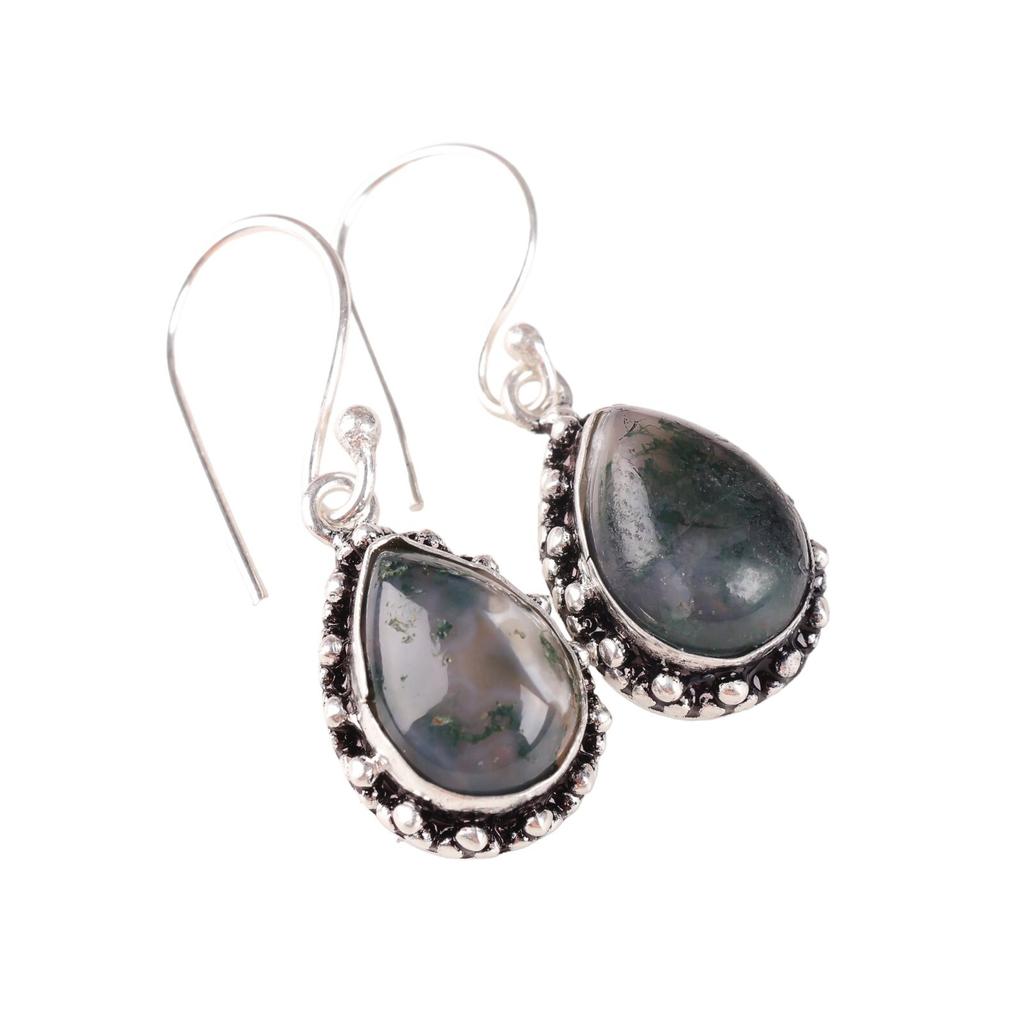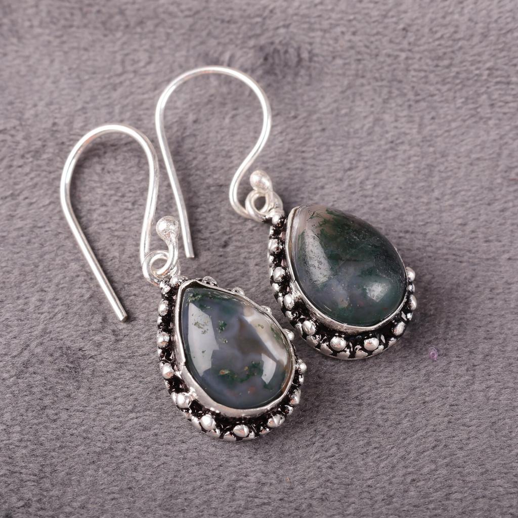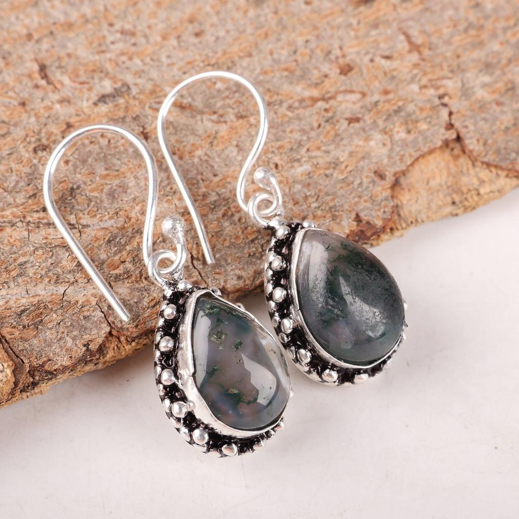Натуральный Моховой Агат Драгоценный Камень Серебро 925 пробы Ювелирные Изделия Ручной Работы Серьги 1,41" EE-97-33