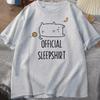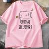 Смешная футболка для сна с котом Милая футболка с котенком Повседневная футболка с коротким рукавом Женская одежда Летние топы с круглым вырезом Уличная одежда