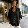 Осенняя тонкая модная универсальная женская повседневная рубашка на пуговицах, ленивая модная повседневная однотонная простая свободная рубашка