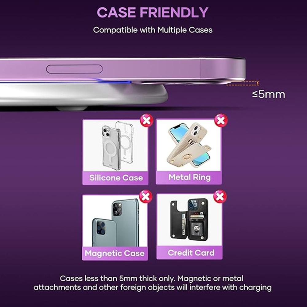 ✅ Легкая беспроводная зарядка и совместимость с чехлом: Быстрая беспроводная зарядка позволяет заряжать ваше устройство с более высокой скоростью зарядки, которая до 1,8 раза выше, чем у стандартной беспроводной зарядки.. Не возитесь с чехлом для телефона. Индуктивная зарядка непосредственно через защитные чехлы толщиной до 6 мм / 0,23 дюйма (не включая корпуса с магнитным или металлическим креплением).