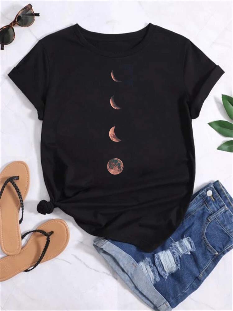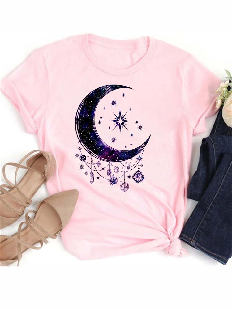Футболка Maycaur женская с принтом луны и планеты, модные футболки, повседневная, с круглым вырезом, с коротким рукавом, женская, уличная, винтажные топы