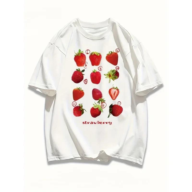 Футболка с принтом клубники, с круглым вырезом, летняя повседневная футболка с коротким рукавом, летняя дышащая футболка, женская одежда