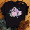 Женская футболка с принтом цветов и бабочек, повседневная футболка с коротким рукавом, женская футболка, женская футболка с рисунком