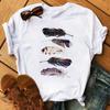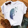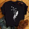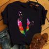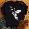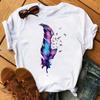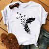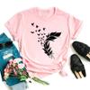Модная женская футболка с забавным принтом бабочки и пера, футболка, летние топы с коротким рукавом, футболка, женские футболки с перьями