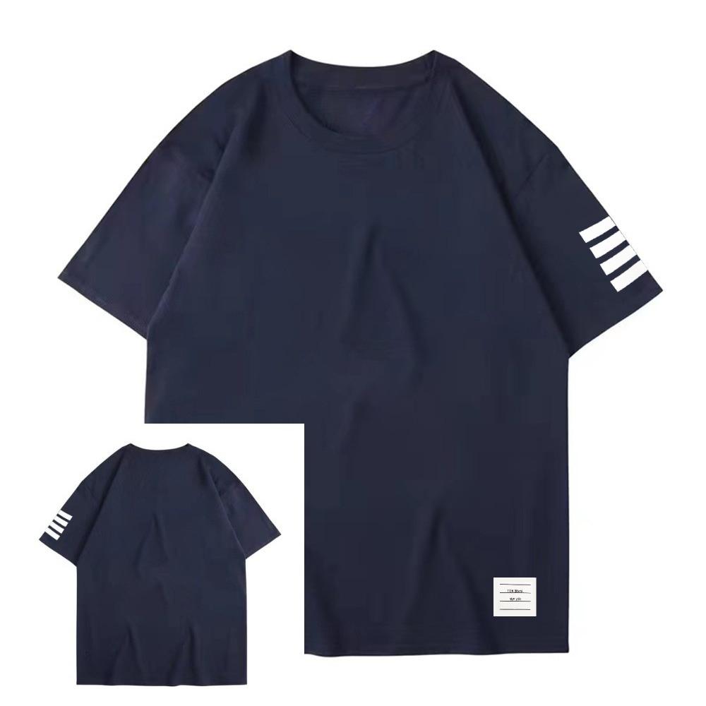 Thom Browne America Летняя мужская футболка Классический принт Чистый хлопок Повседневная Спортивная Круглый вырез Короткий рукав Повседневная Уличная футболка
