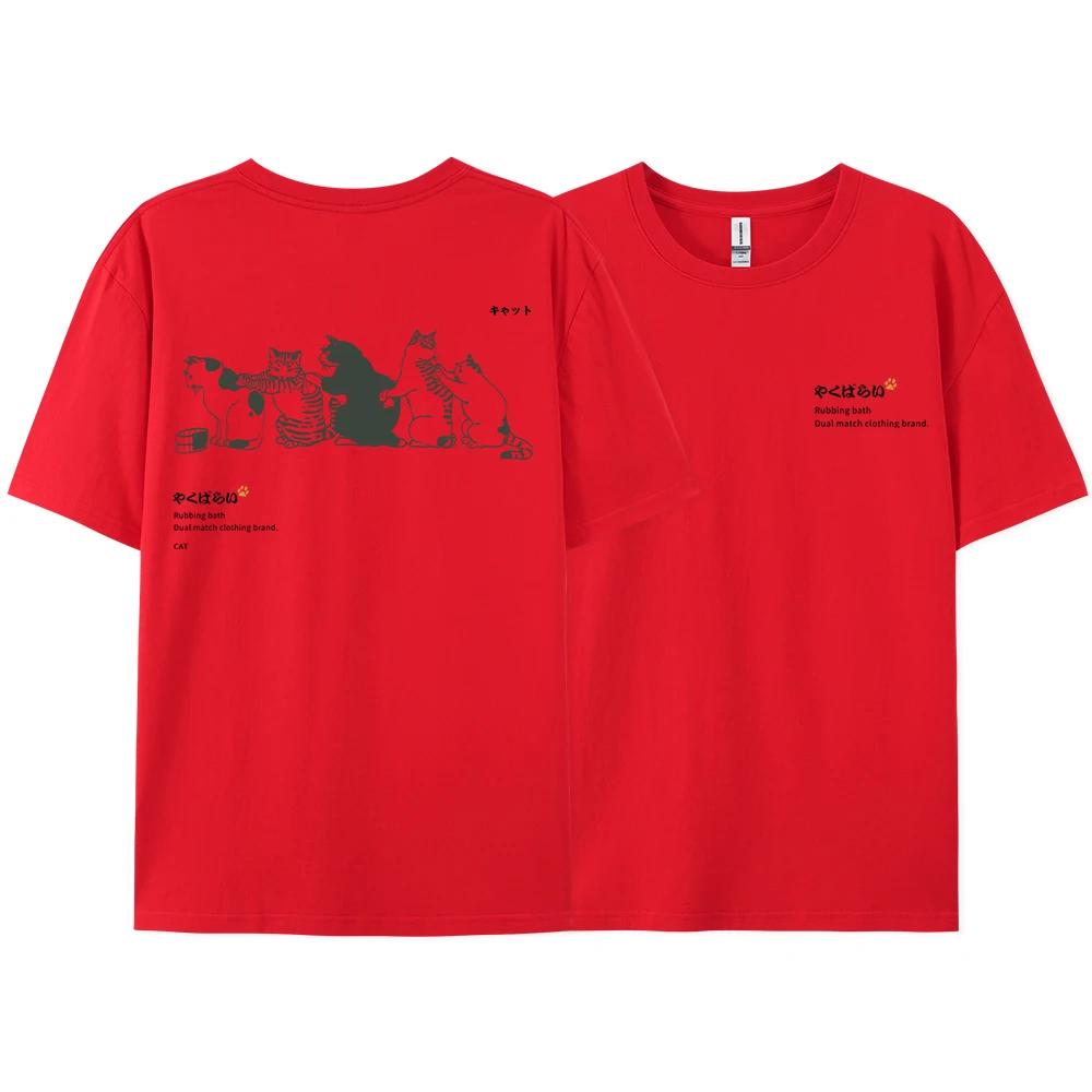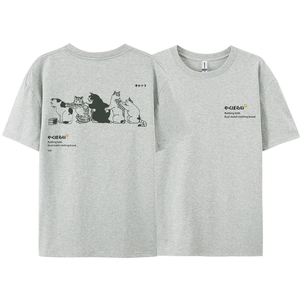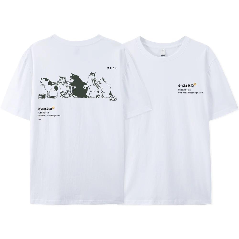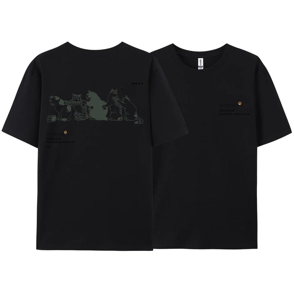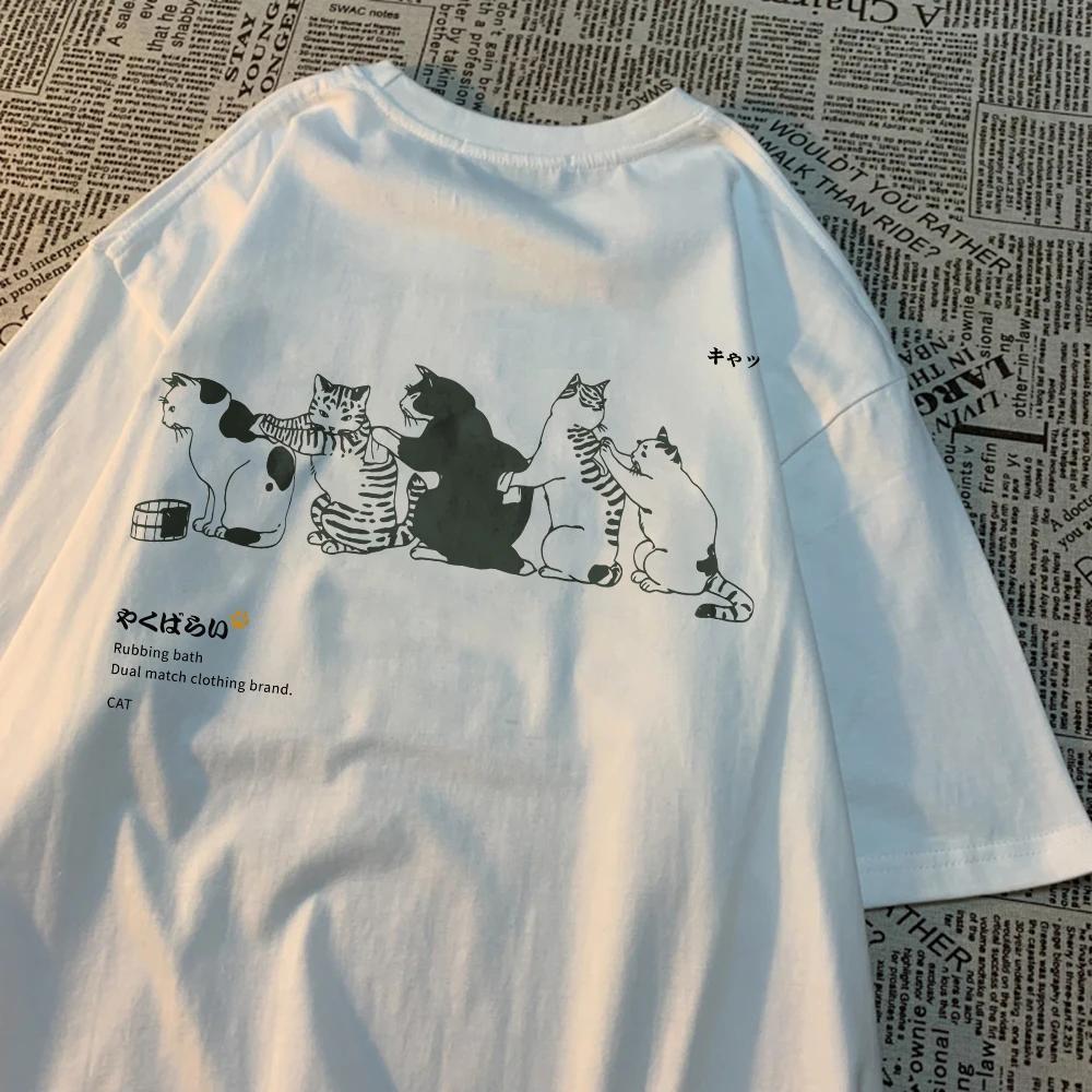 Япония Харадзюку Очередь Кот Забавный Принт Женские Футболки Свободные Оверсайз Короткий Рукав Модная Повседневная Одежда Мягкие Хип-Хоп Футболки