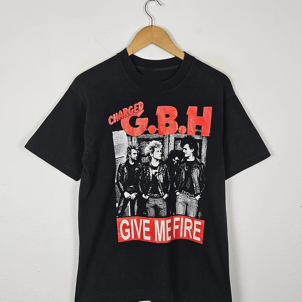 GBH Футболка с графикой в стиле панк-рок для мужчин, черная, хлопковая, с коротким рукавом, с круглым вырезом, все размеры, машинная стирка, повседневная одежда