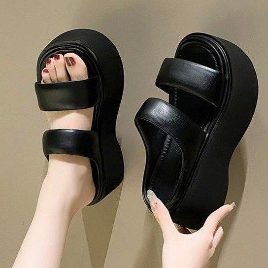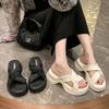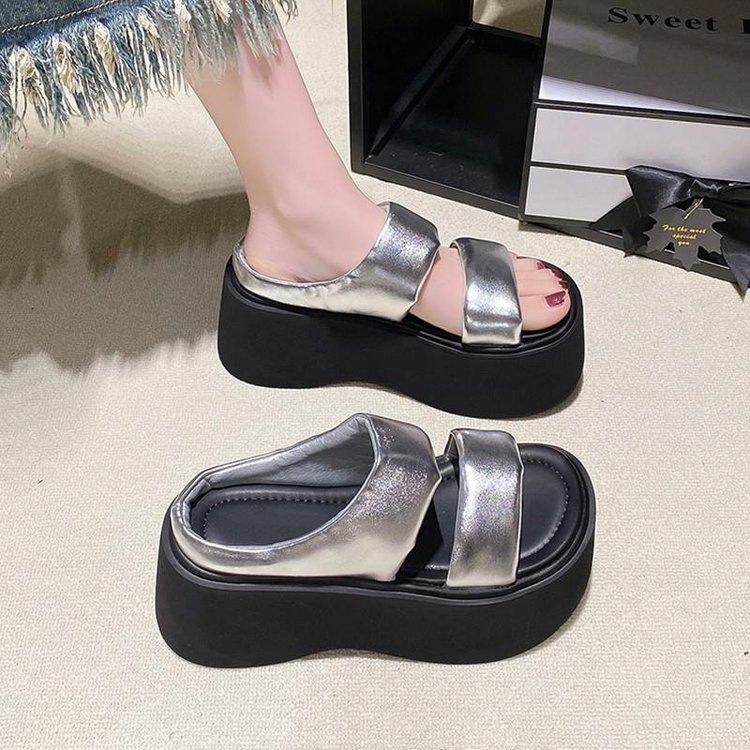Internet celebrity trend casual wear one-word slippers women's summer 2025 Korean version of muffin thick-soled small man cool shoes