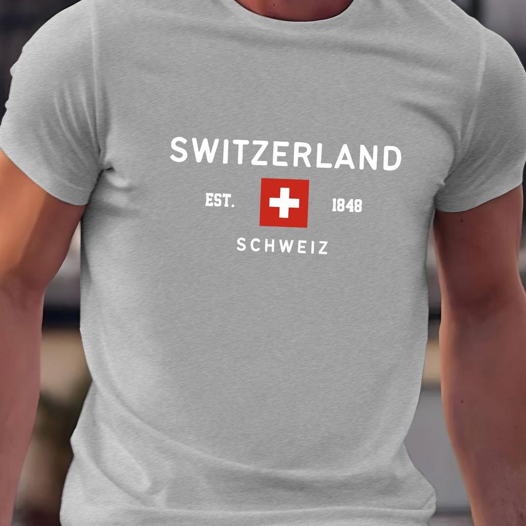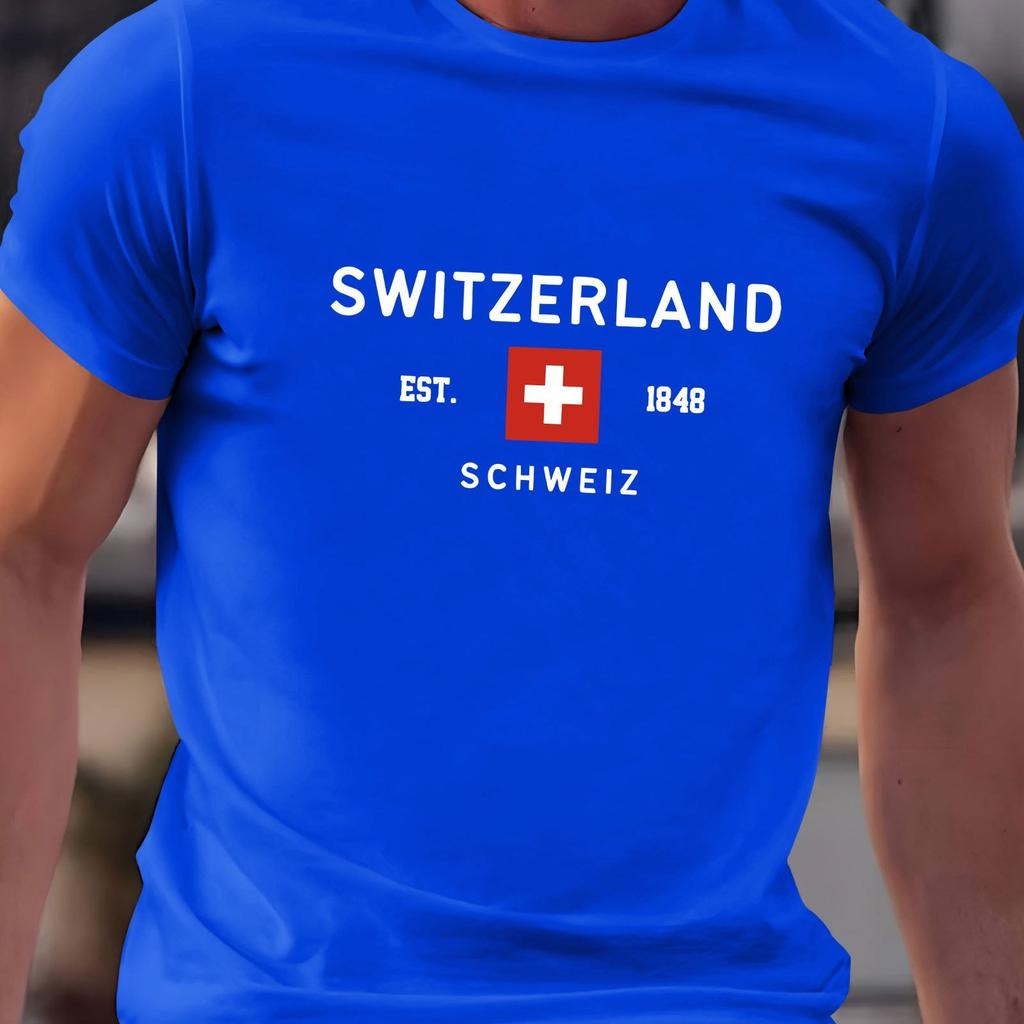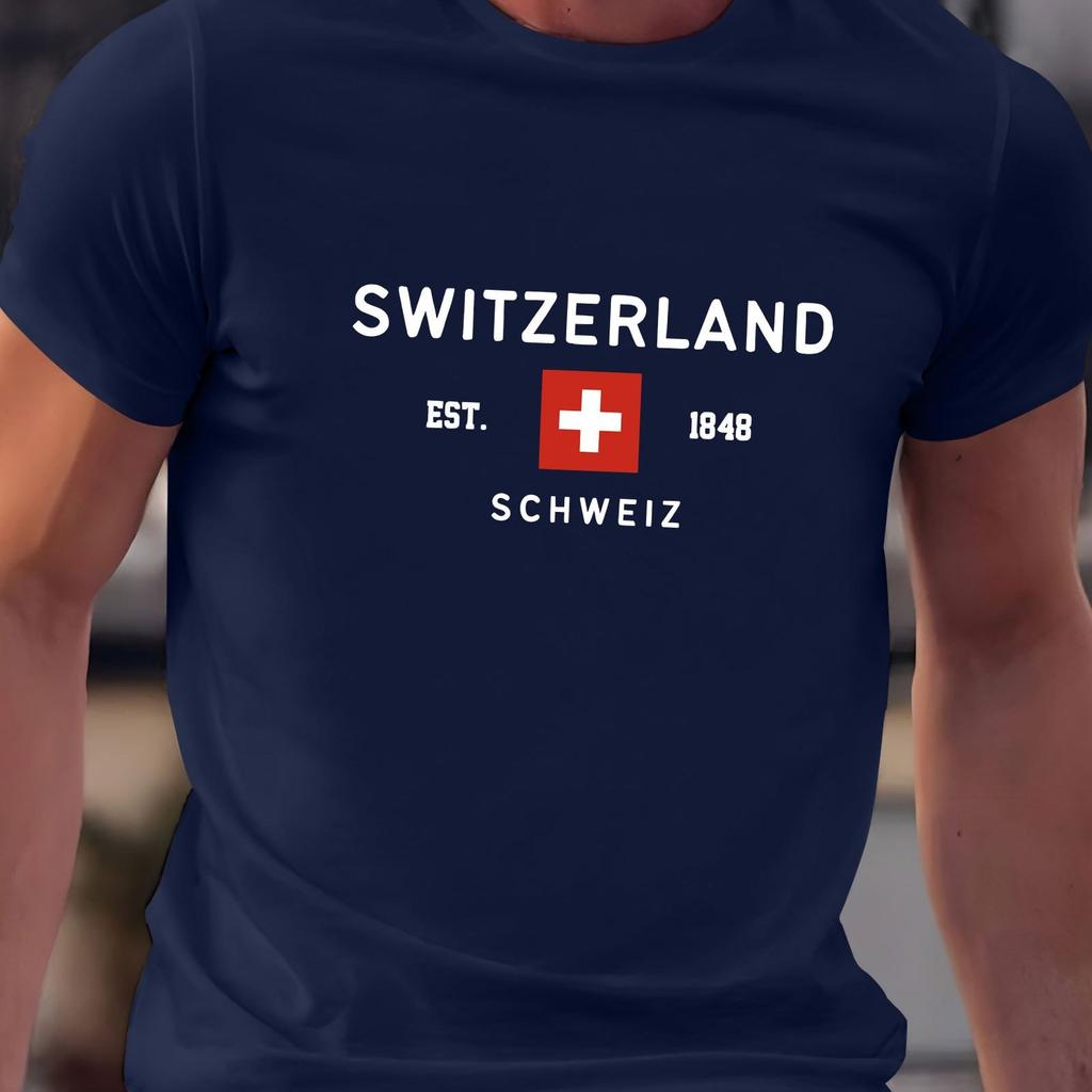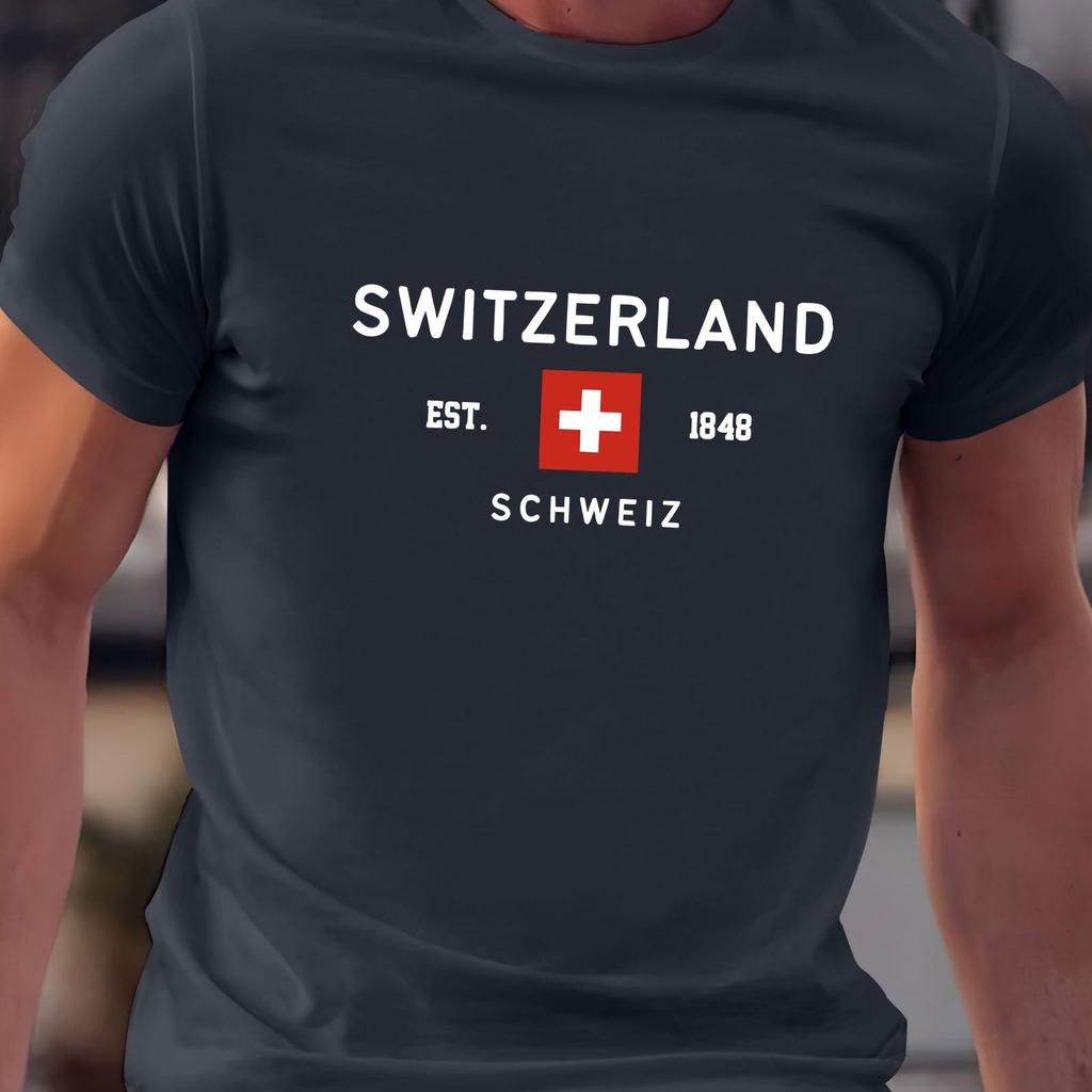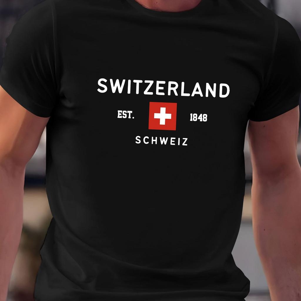 Летняя мужская футболка из 100% чистого хлопка, повседневная, свободного кроя, большого размера, с принтом швейцарского узора, с круглым вырезом и короткими рукавами