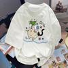 Четыре маленьких котенка, держащих рыбу, женские футболки, мультяшные принты, футболки, мягкие топы с коротким рукавом и круглым вырезом, летняя одежда, графический Y2K