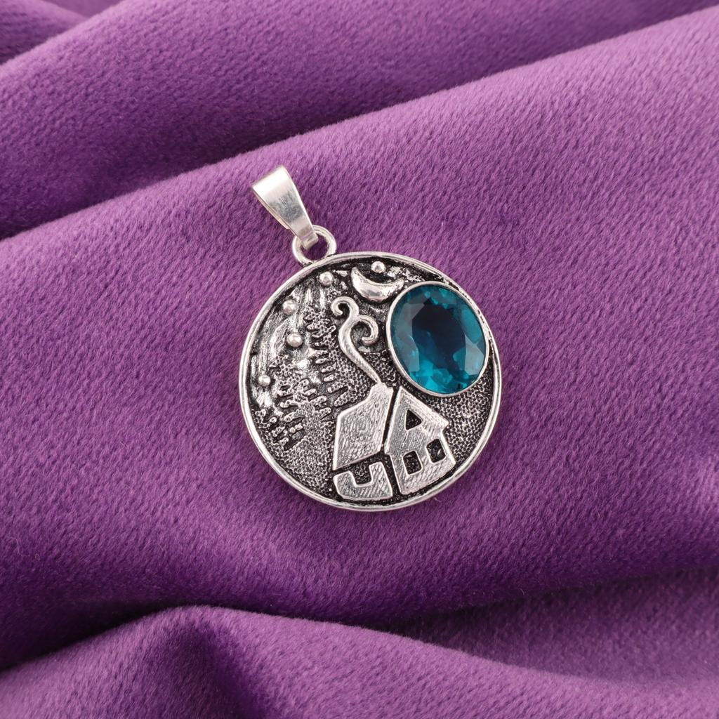 Редкий Апатит Драгоценный камень 925 Стерлинговое серебро Ювелирная подвеска 1,29'' Подарок для жены CP-39-7