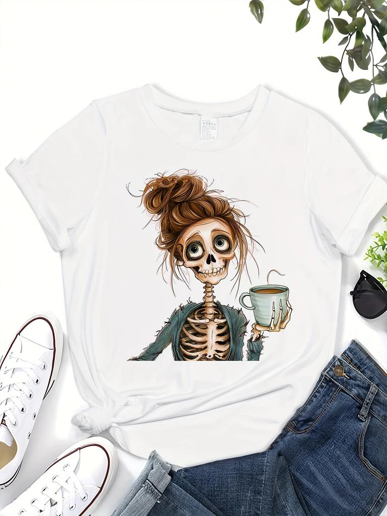 Яркая футболка с графическим принтом черепа, с круглым вырезом, мягкая дышащая футболка с коротким рукавом, женская модная одежда для повседневной носки