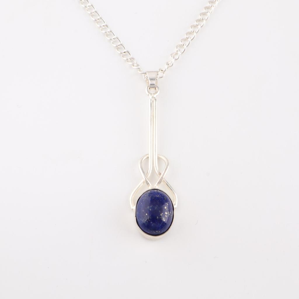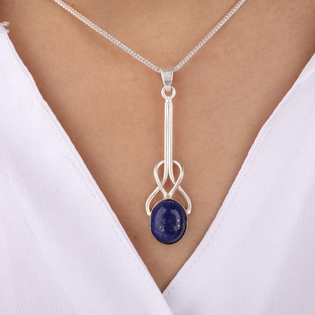 Лазурит Драгоценный камень 925 Стерлинговое серебро Ювелирные изделия Ручной работы Женский кулон 1,79" PP-60-36