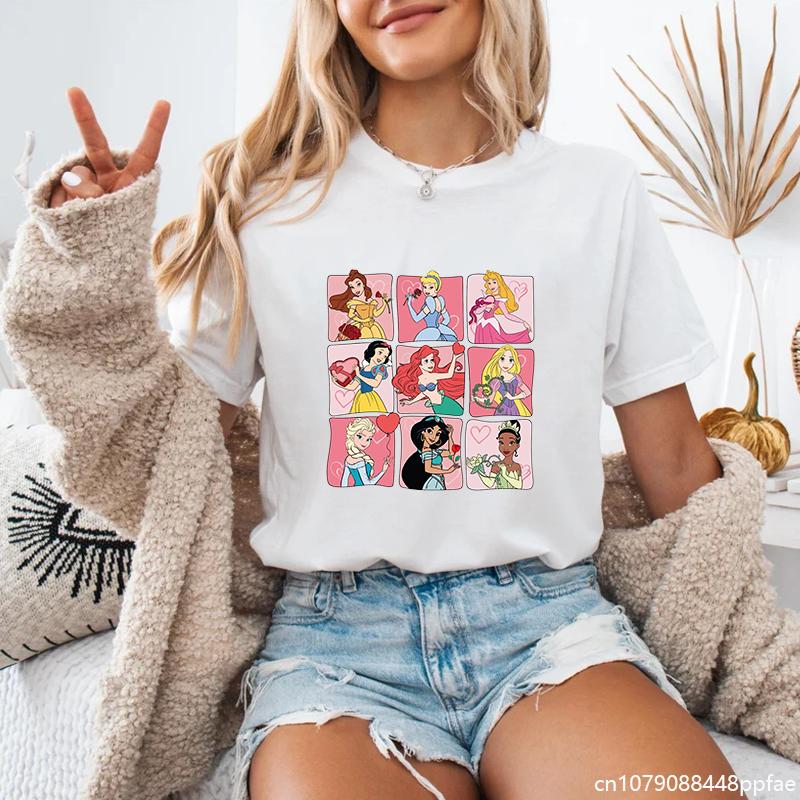 Женская новая модная футболка с принтом в виде принцесс Диснея, повседневная, милая, мультяшная женская рубашка, топы