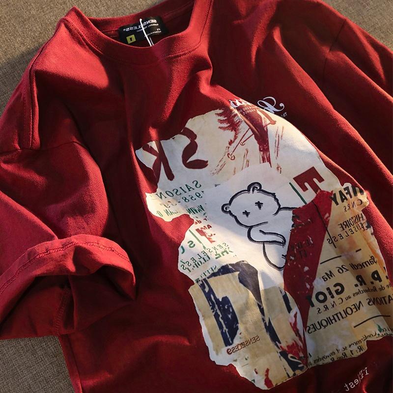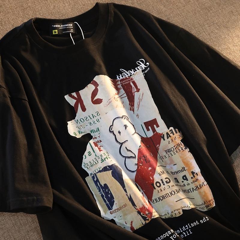 Большая свободная женская футболка оверсайз Sve Корейский уличный стиль Гонконгский стиль Уникальный круглый вырез Хлопковый топ