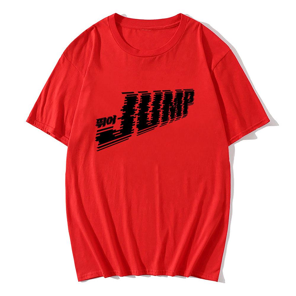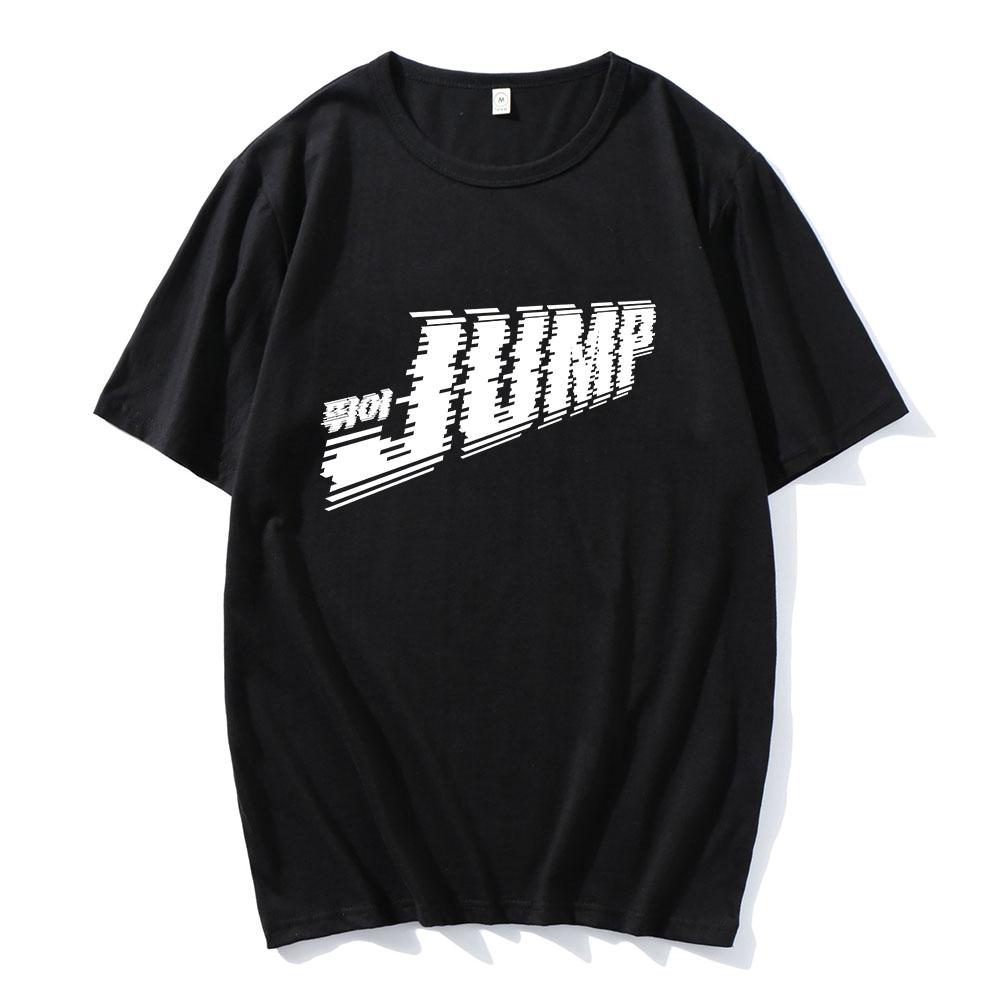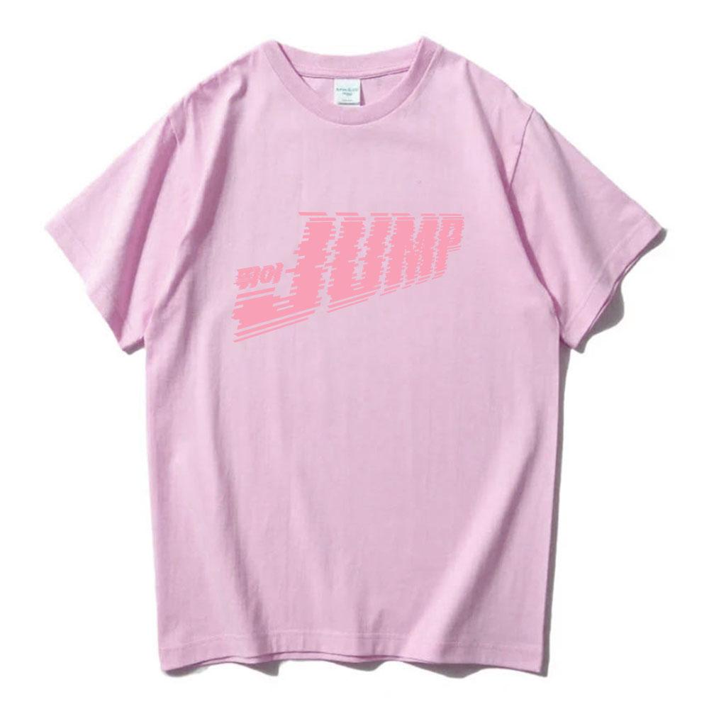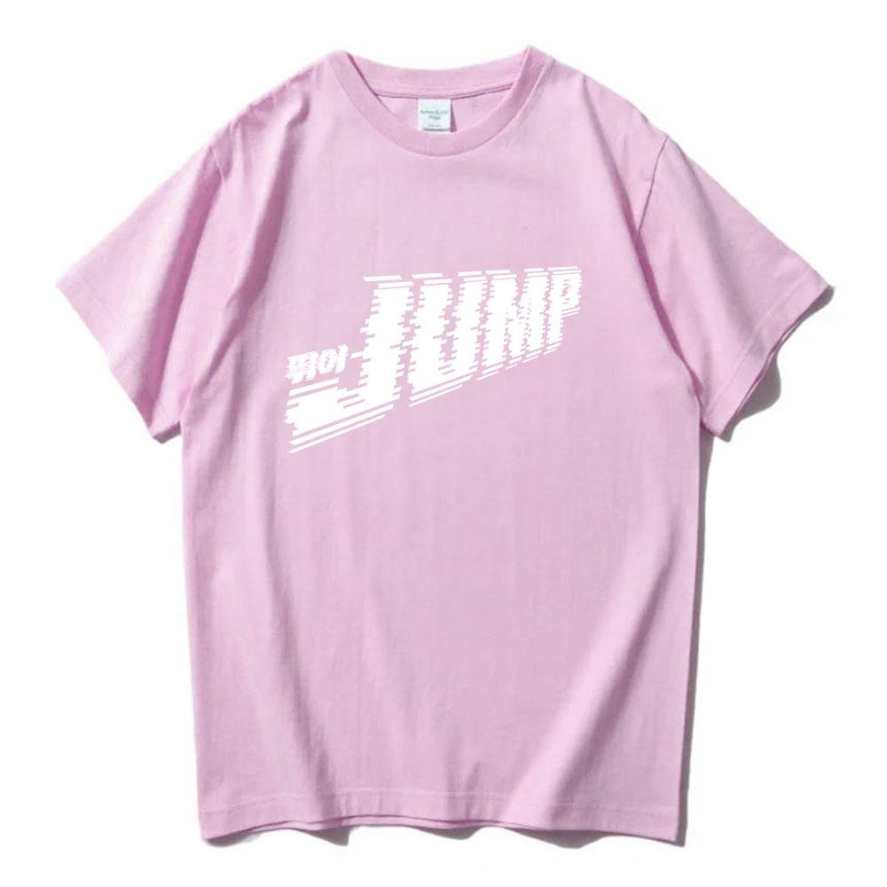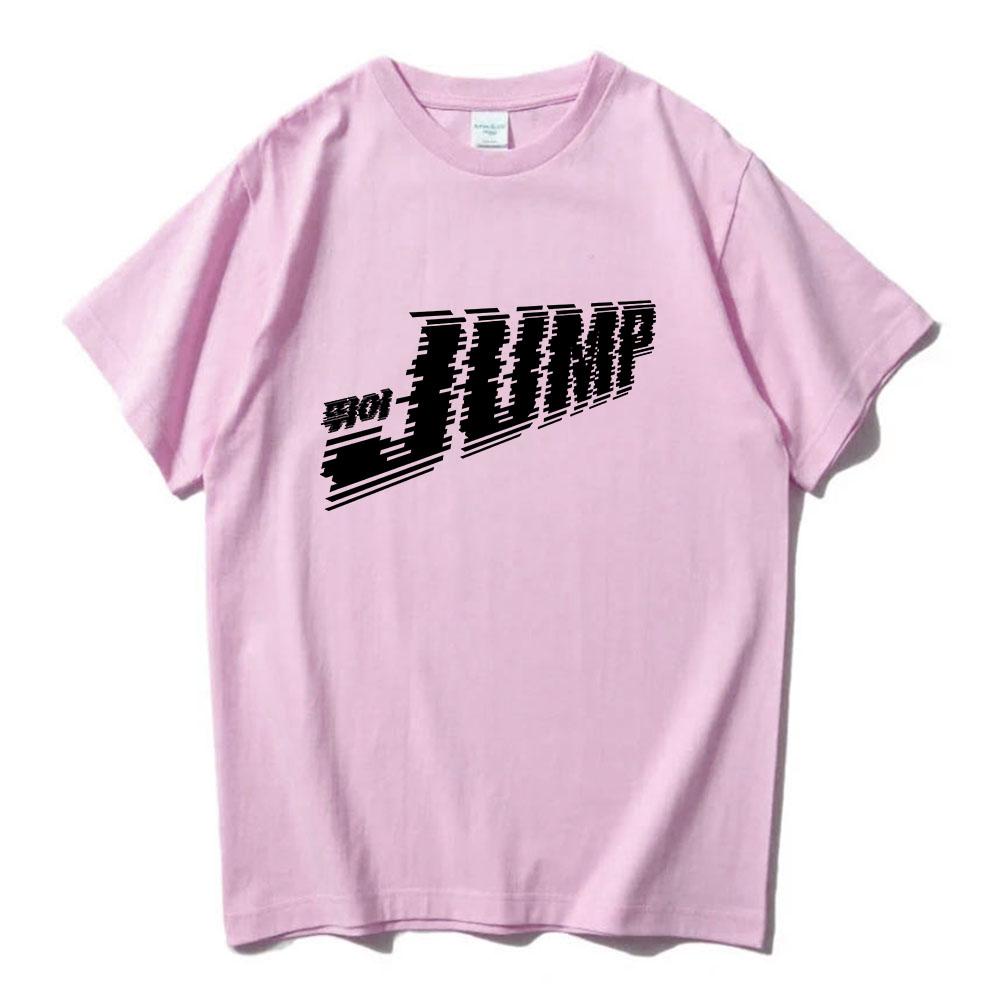 Черная и розовая футболка с одинарным принтом Jump, корейская мода, футболки для женской группы, унисекс, уличная одежда, повседневные свободные футболки с коротким рукавом