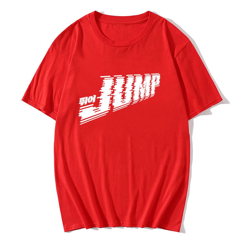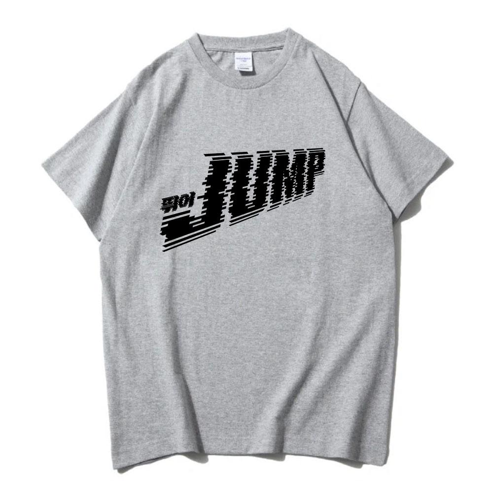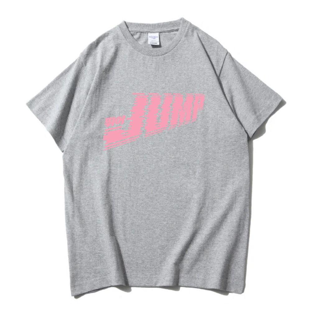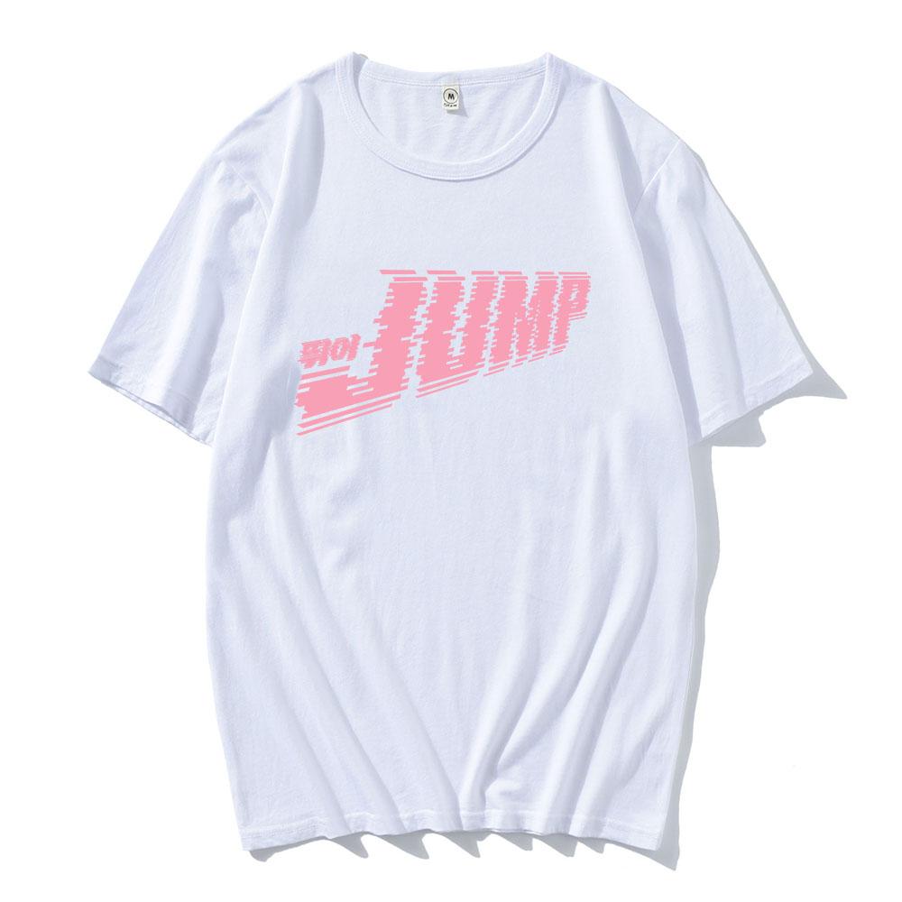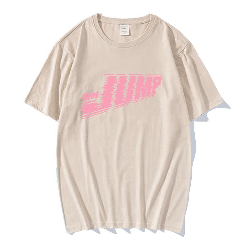 Черная и розовая футболка с одинарным принтом Jump, корейская мода, футболки для женской группы, унисекс, уличная одежда, повседневные свободные футболки с коротким рукавом