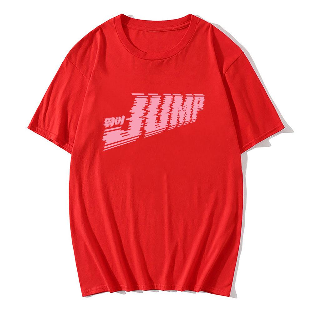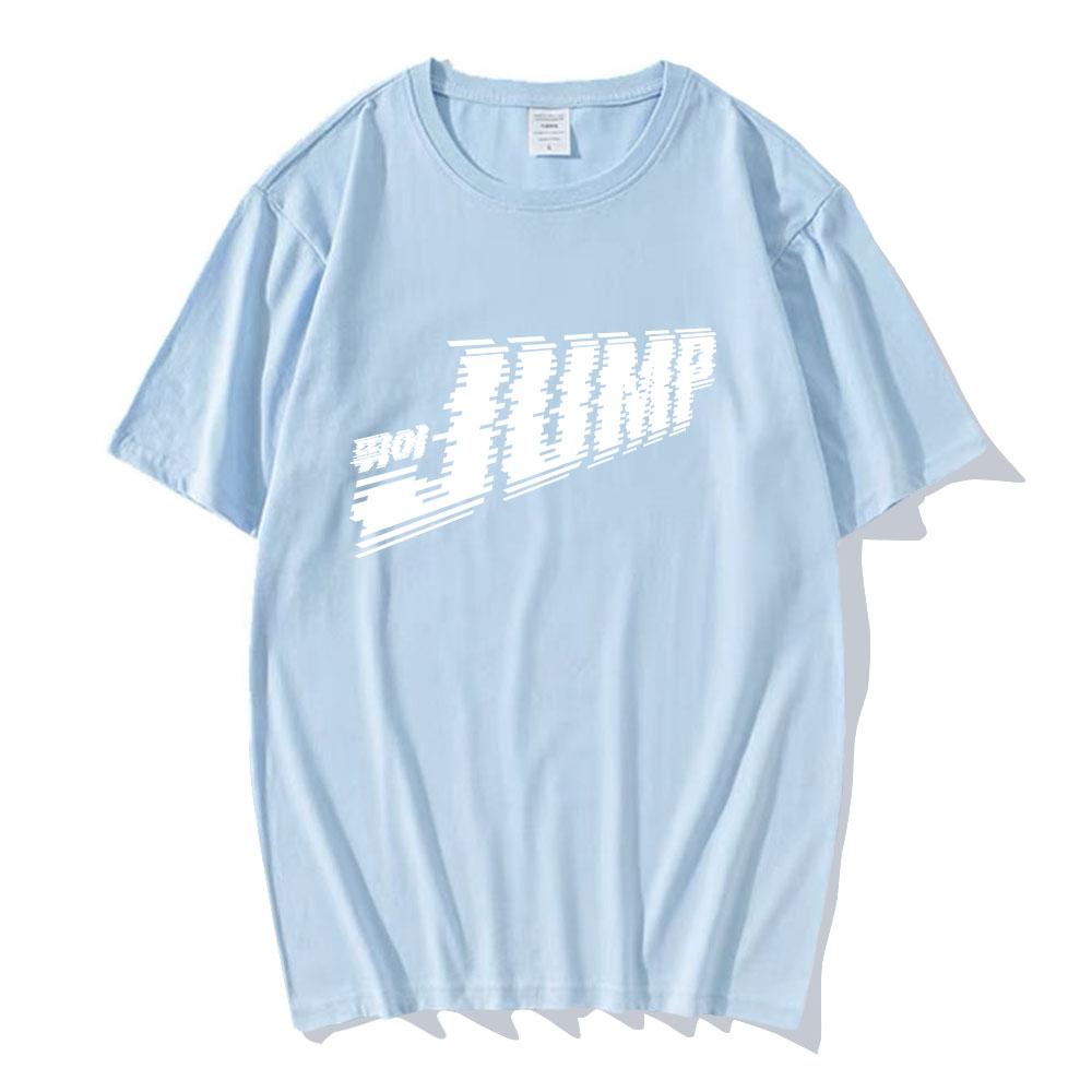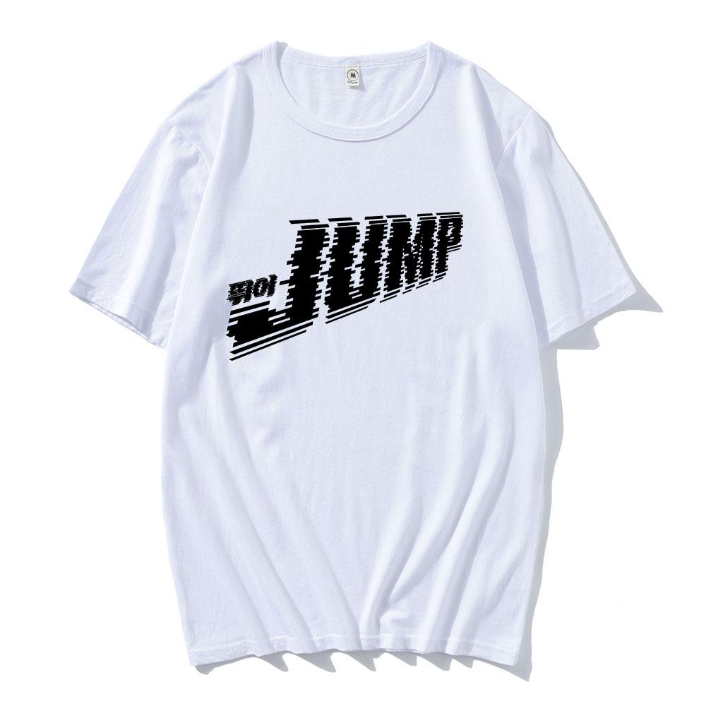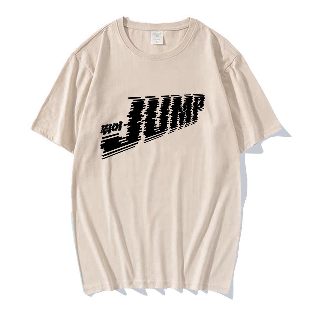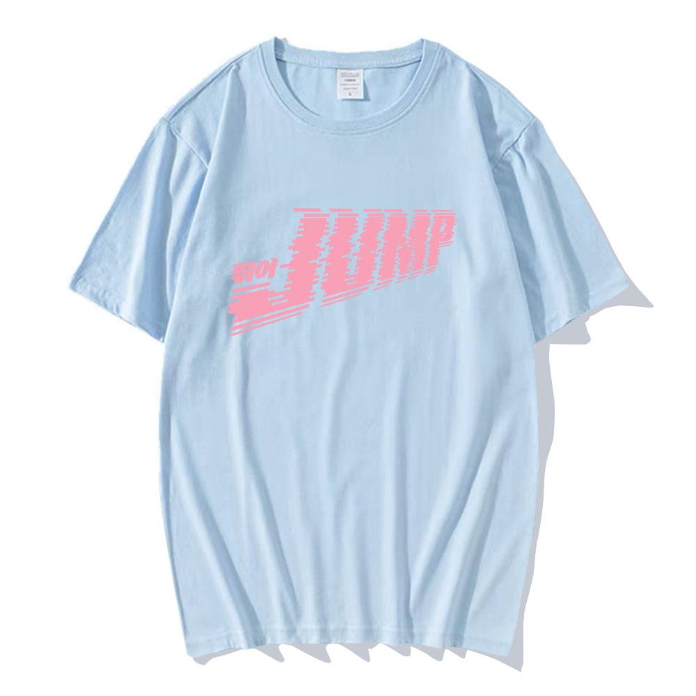 Черная и розовая футболка с одинарным принтом Jump, корейская мода, футболки для женской группы, унисекс, уличная одежда, повседневные свободные футболки с коротким рукавом