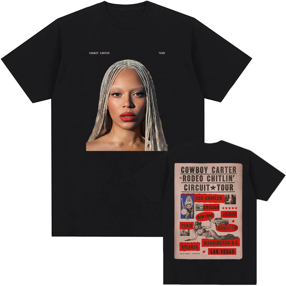Футболка Beyoncé COWBOY CARTER TOUR 2025 из хлопка, летняя, для женщин и мужчин, с коротким рукавом, круглым вырезом, свободного кроя, с принтом.