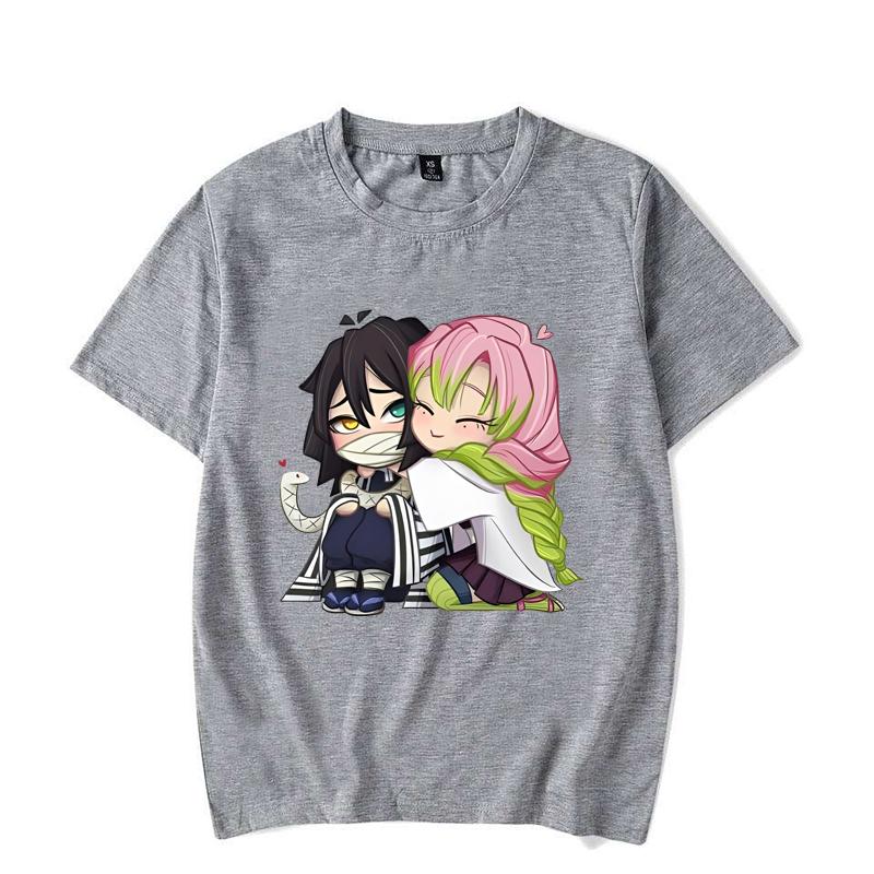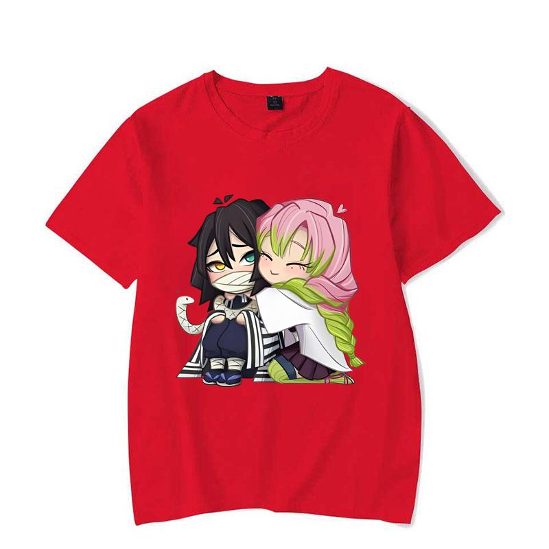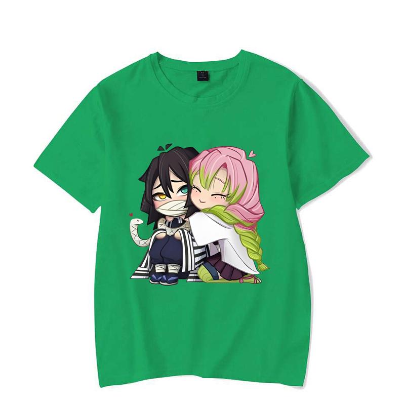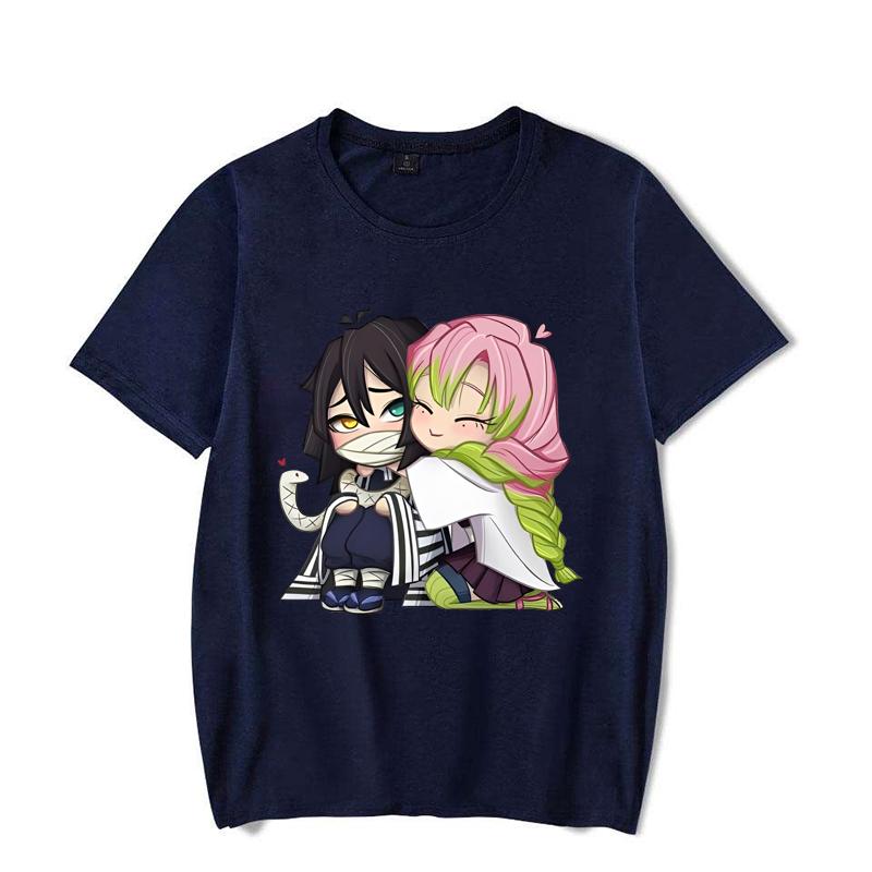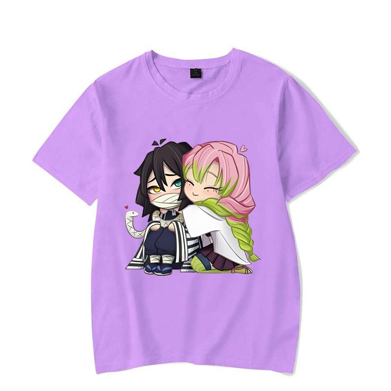 Забавная футболка с принтом мультфильма Kanroji Mitsuri Iguro Obanai, свободная футболка с коротким рукавом и круглым вырезом, повседневная футболка в стиле аниме