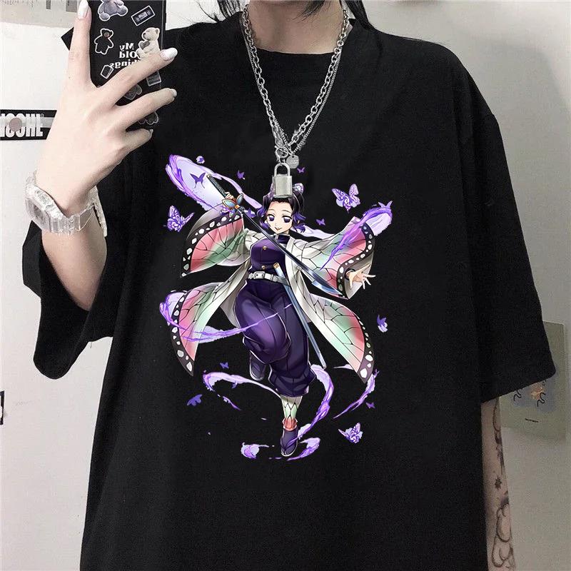Новая женская модная футболка с забавным принтом Кочо Шинобу, летняя, унисекс, свободная, повседневная, больших размеров, аниме, графическая футболка, топы