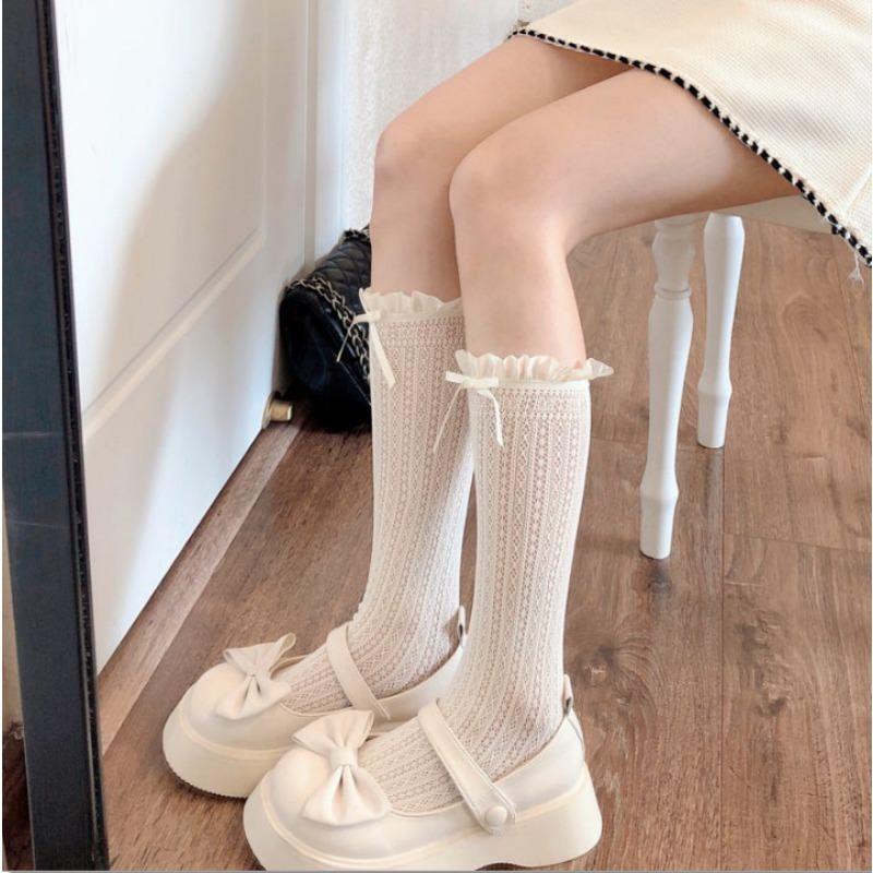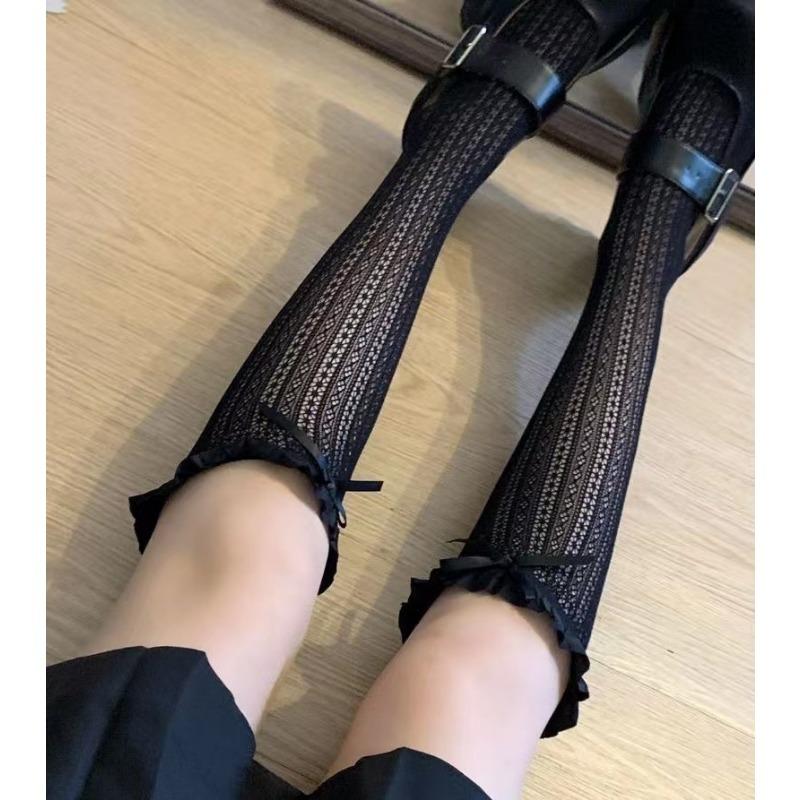Женские весенне-летние тонкие носки с бантом, полые кружевные носки до бедра