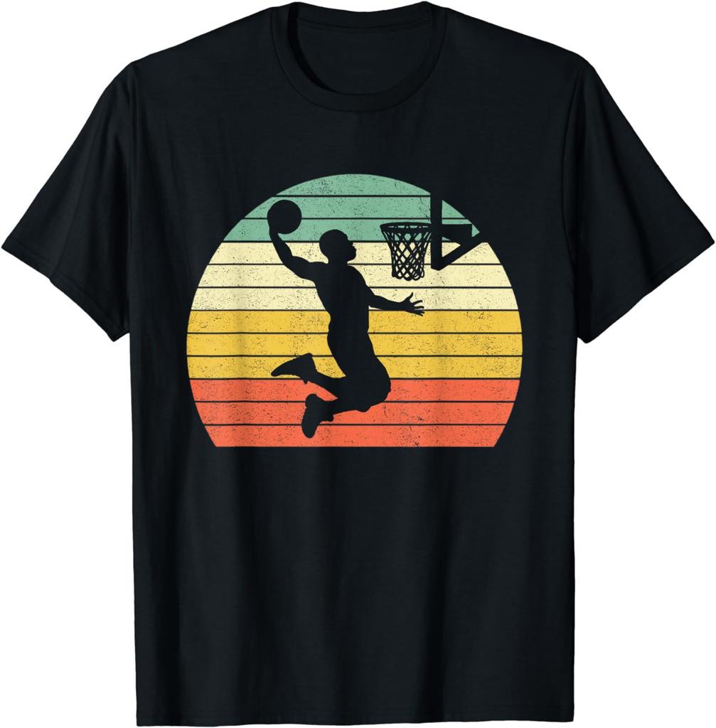 Винтажная Ретро Футболка с Баскетбольным Данком Закат Разноцветная Мужская Женская Подростковая Футболка Мужская Одежда Графические Футболки