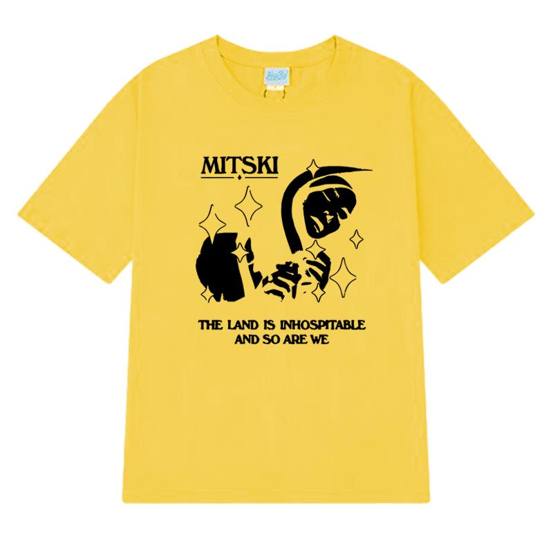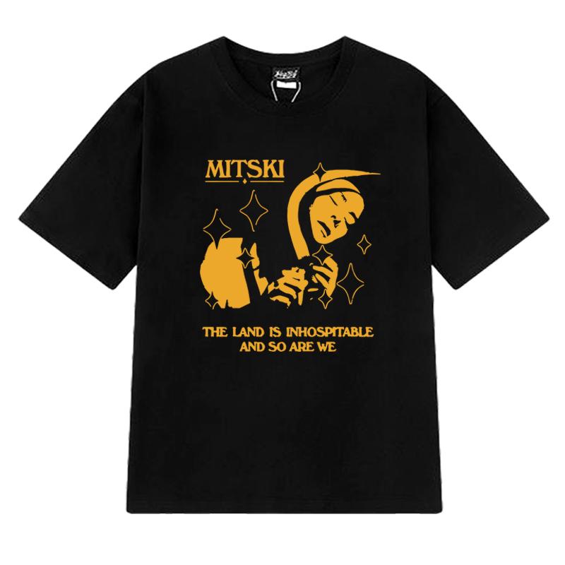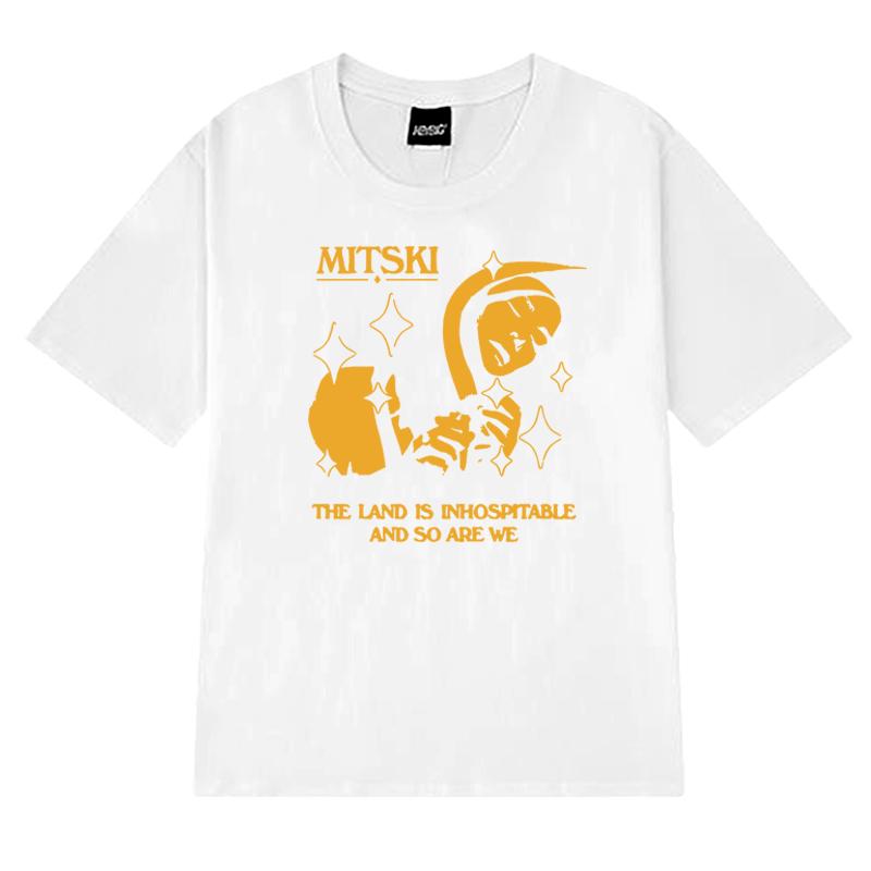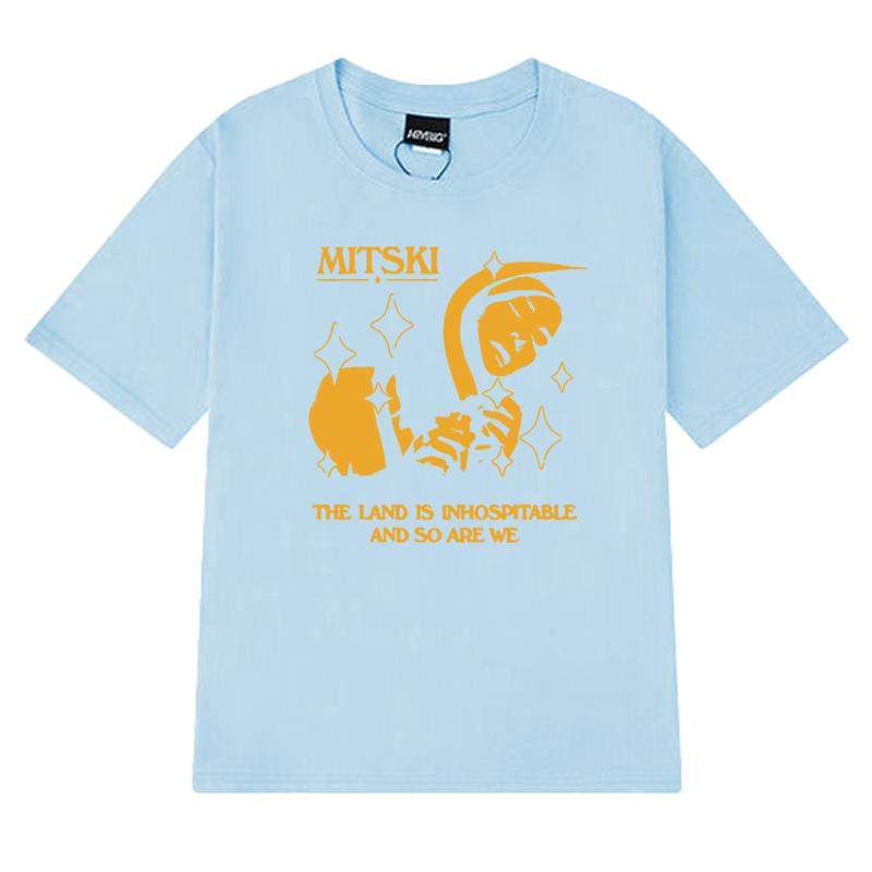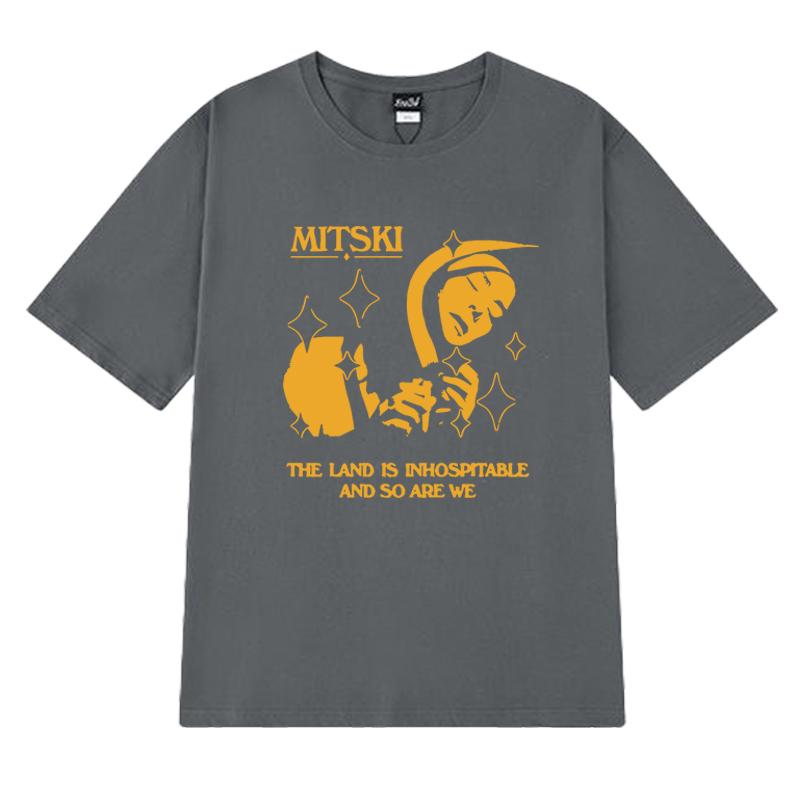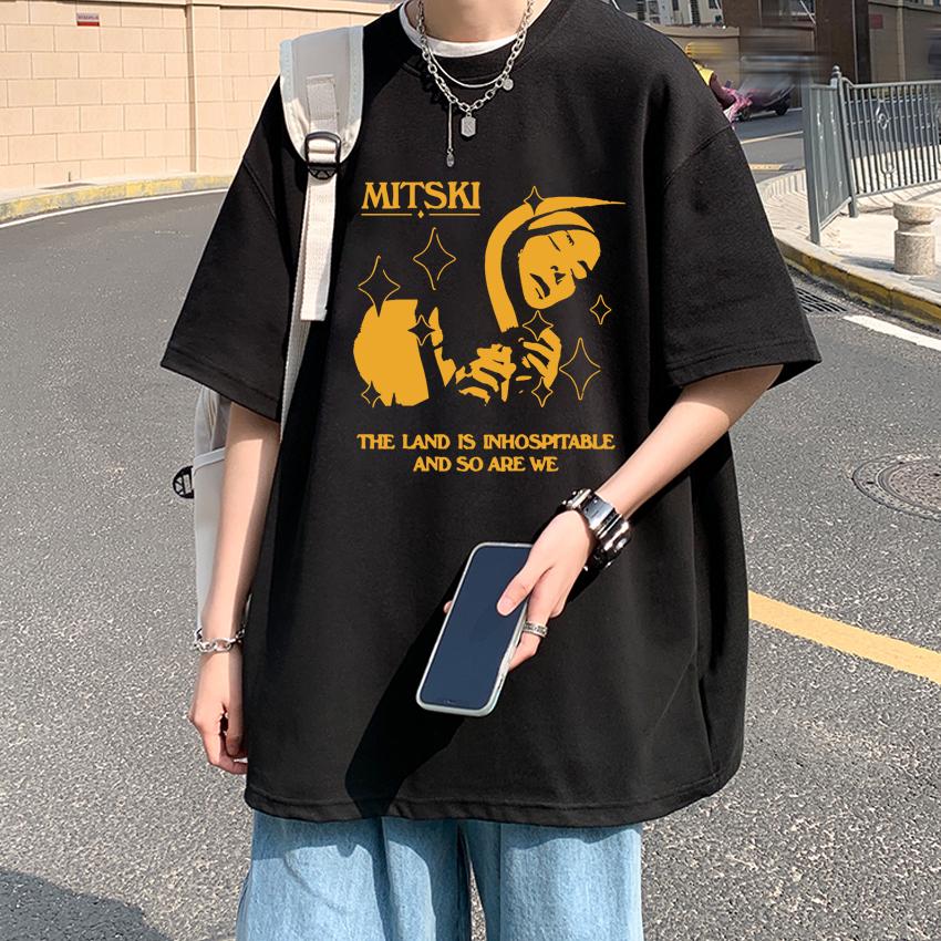 Мода Земля негостеприимна Принт Футболки с коротким рукавом Унисекс Митски Футболка к новому альбому Мужская Женская летняя 100% хлопок Топы