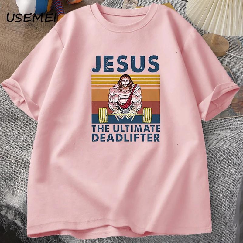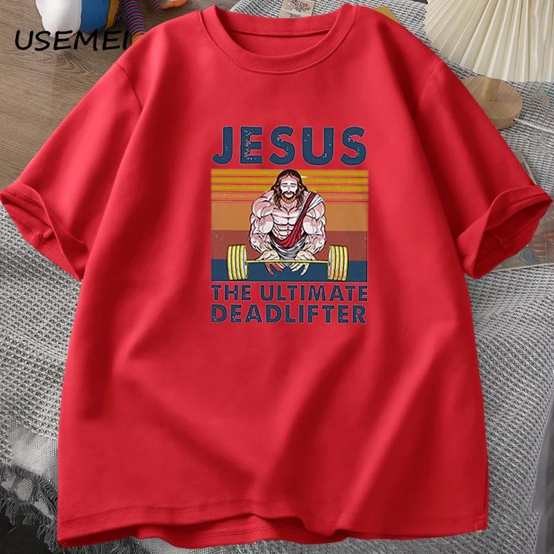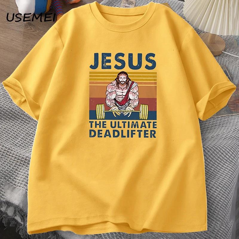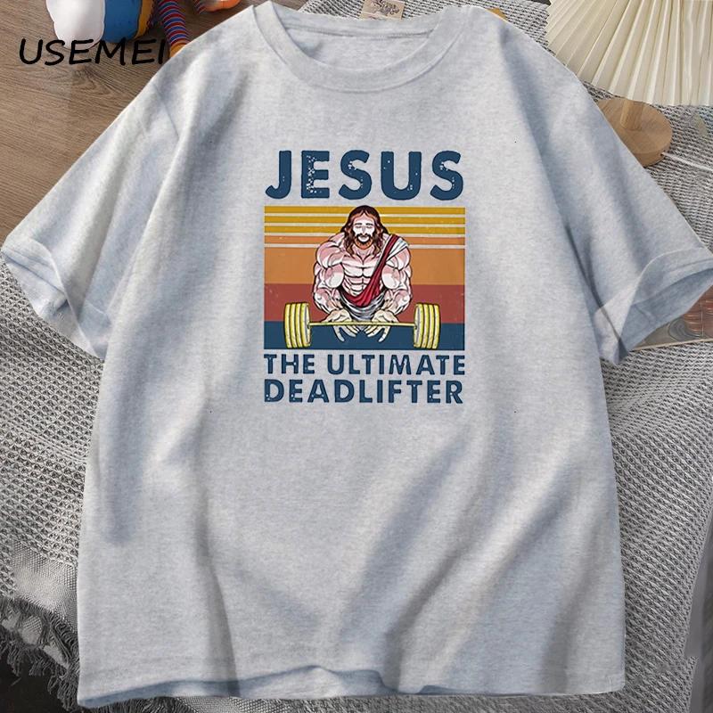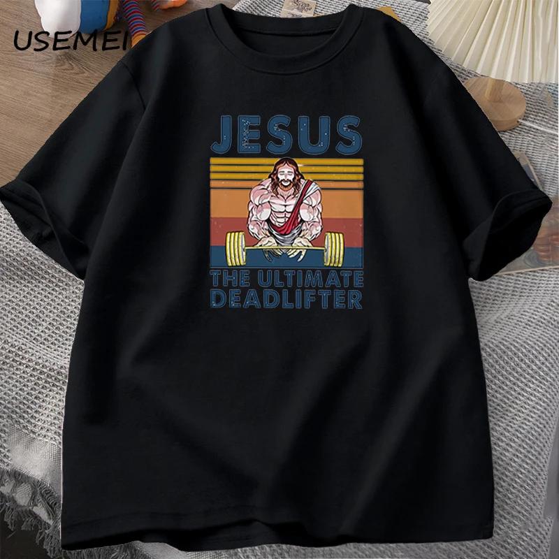 Jesus The Ultimate Deadlifter Gym Working Out Fitness Vintage T Shirt for Men T-shirt Male Cotton Summer Men's T-shirt Clothes