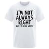 Модная мужская повседневная футболка Мужская Я не всегда прав, но я никогда не ошибаюсь Футболка с коротким рукавом Мужские забавные топы Летняя футболка оверсайз
