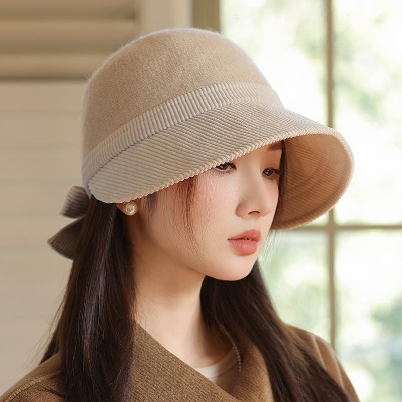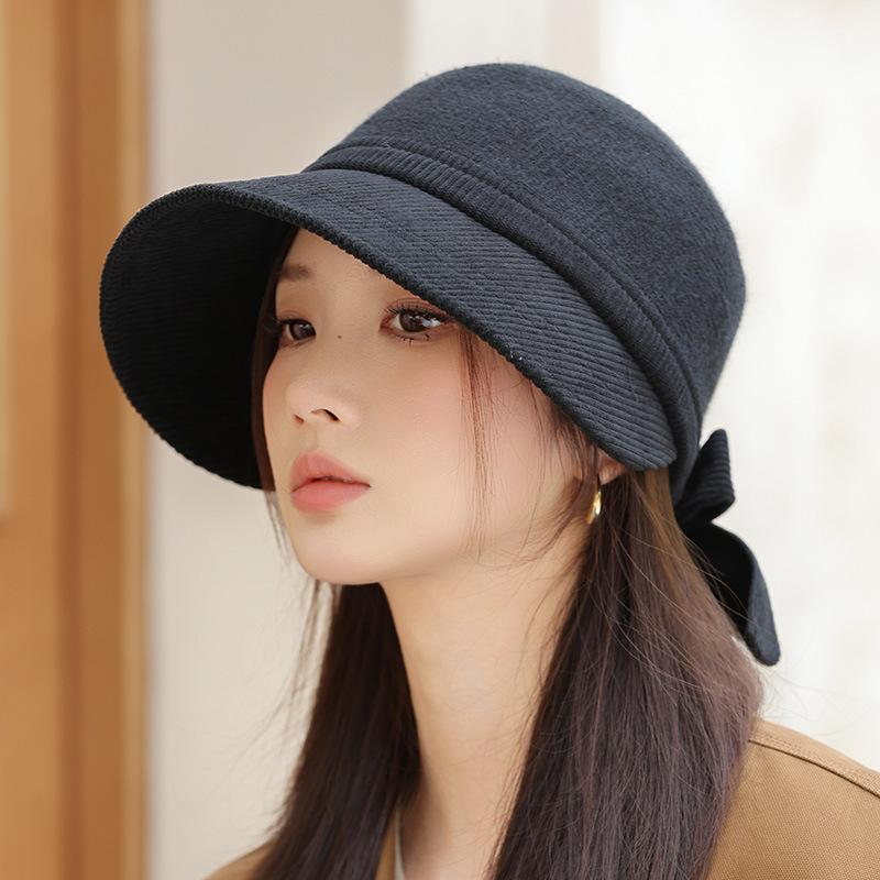 Корейская версия новой осенне-зимней шляпы для женщин с широкими полями, делающая лицо маленьким, бейсболка с маленьким козырьком, повседневная универсальная куполообразная шляпа, шляпа-котелок с бантом