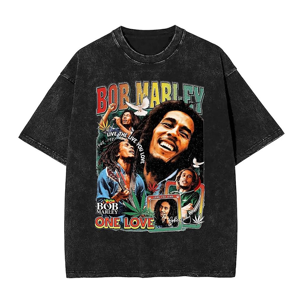 Мужская футболка Боб Марли Регги Выстиранные футболки Харадзюку Музыкант Летняя футболка Дизайн уличного стиля Повседневная одежда Подарок