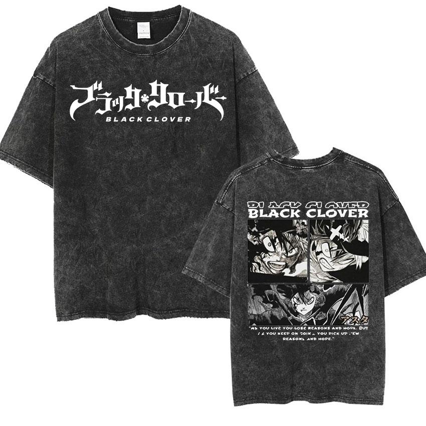 Винтажная футболка оверсайз с аниме «Черный клевер Аста» и эффектом стирки, мужская модная футболка свободного кроя с круглым вырезом, летняя высококачественная хлопковая футболка — купить товар онлайн с бесплатной доставкой по всему миру!