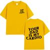 Твоя мама — моё кардио. Футболка для спортзала. Забавные саркастичные высказывания. Шутка. Футболки с коротким рукавом. Хлопковая футболка. Топы оверсайз. Уличная одежда.