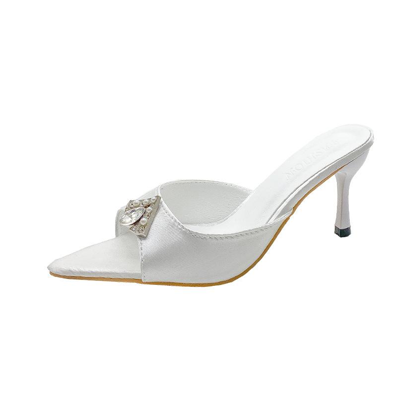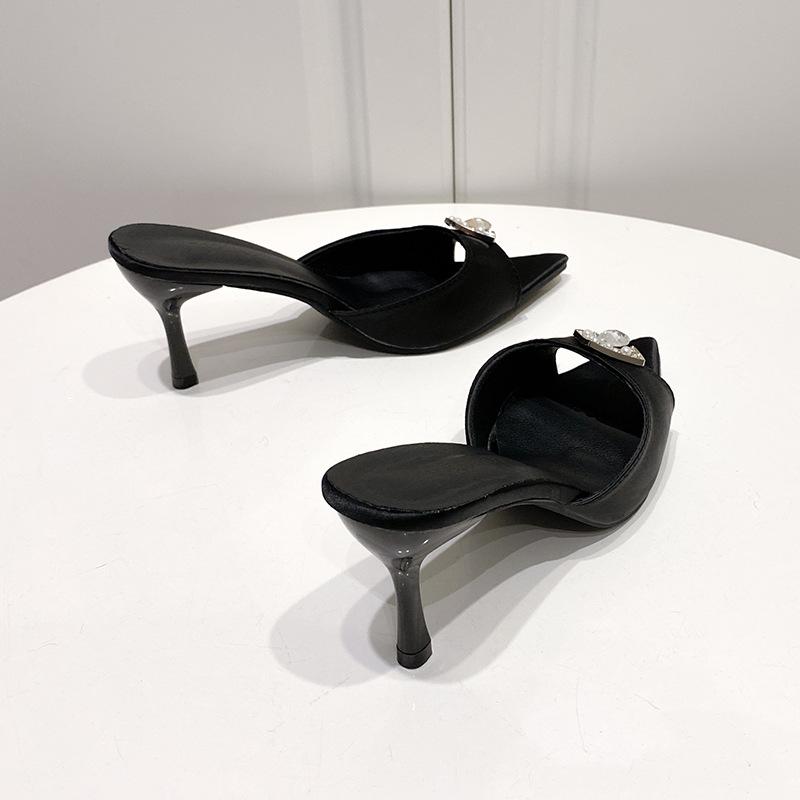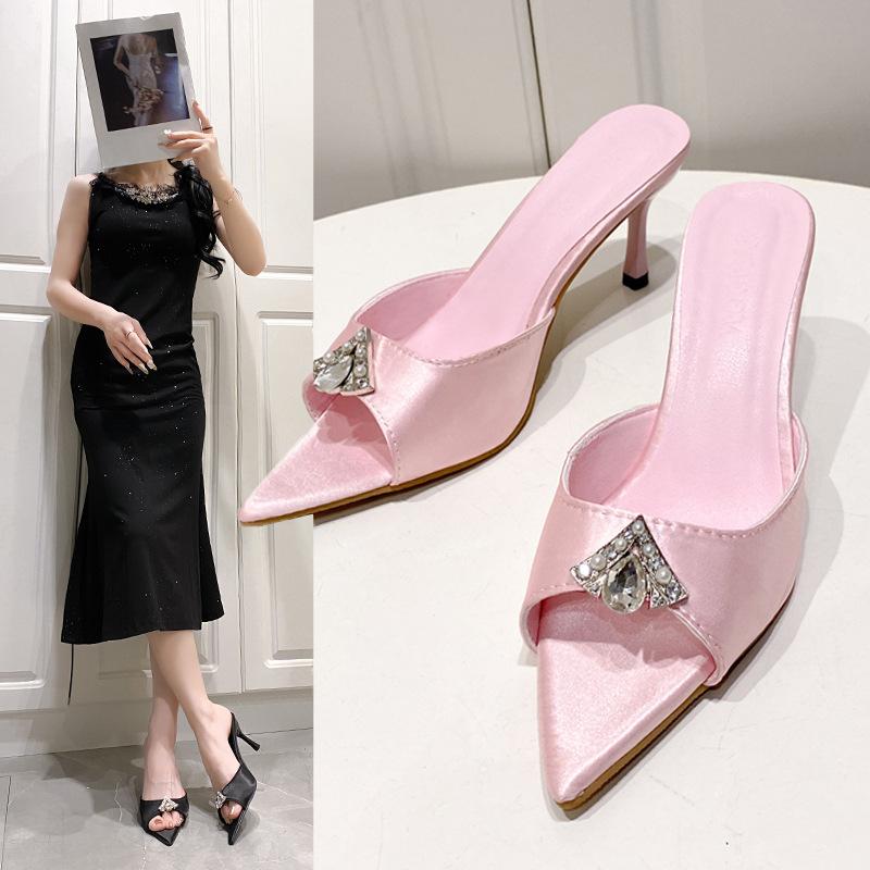 2025 summer pointed open-toed rhinestone high-heeled sandals stiletto one pedal pink high-heeled shoes European and American style