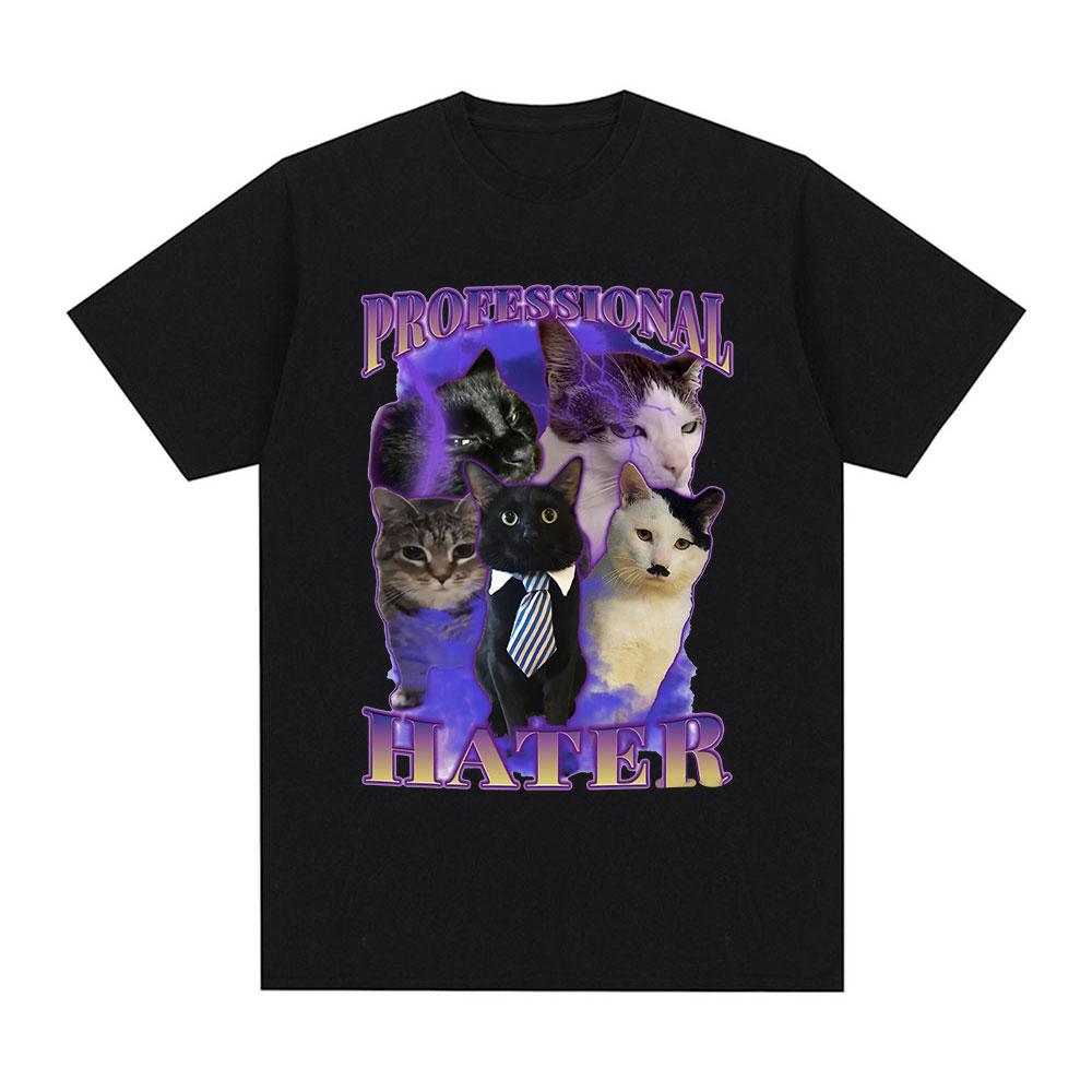 Профессиональный Хейтер Забавный Мем с Котом Графические Футболки Унисекс Модная Футболка Летняя Парная Повседневная Хлопковая Футболка Оверсайз Одежда