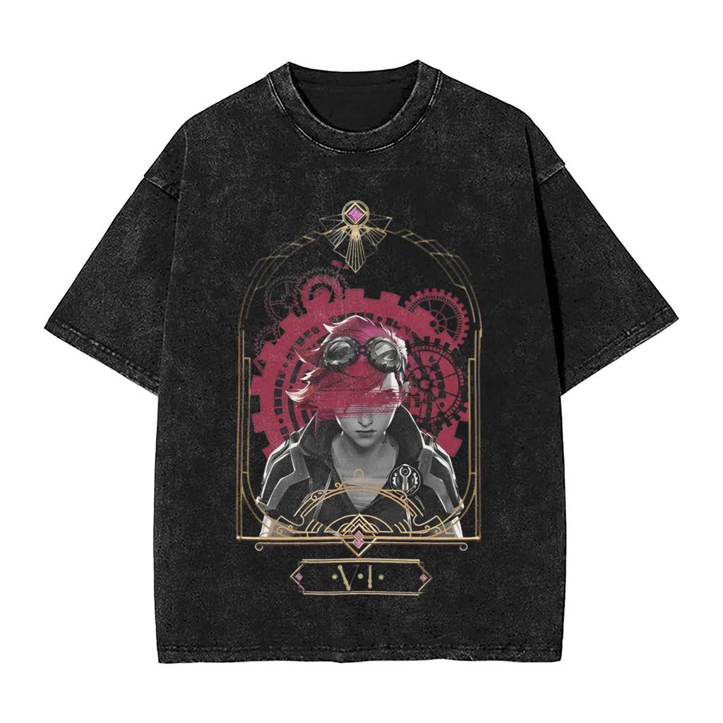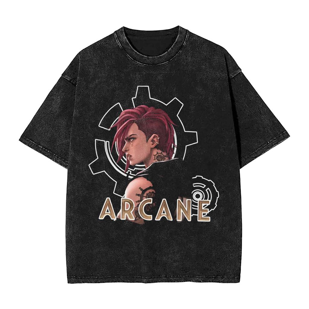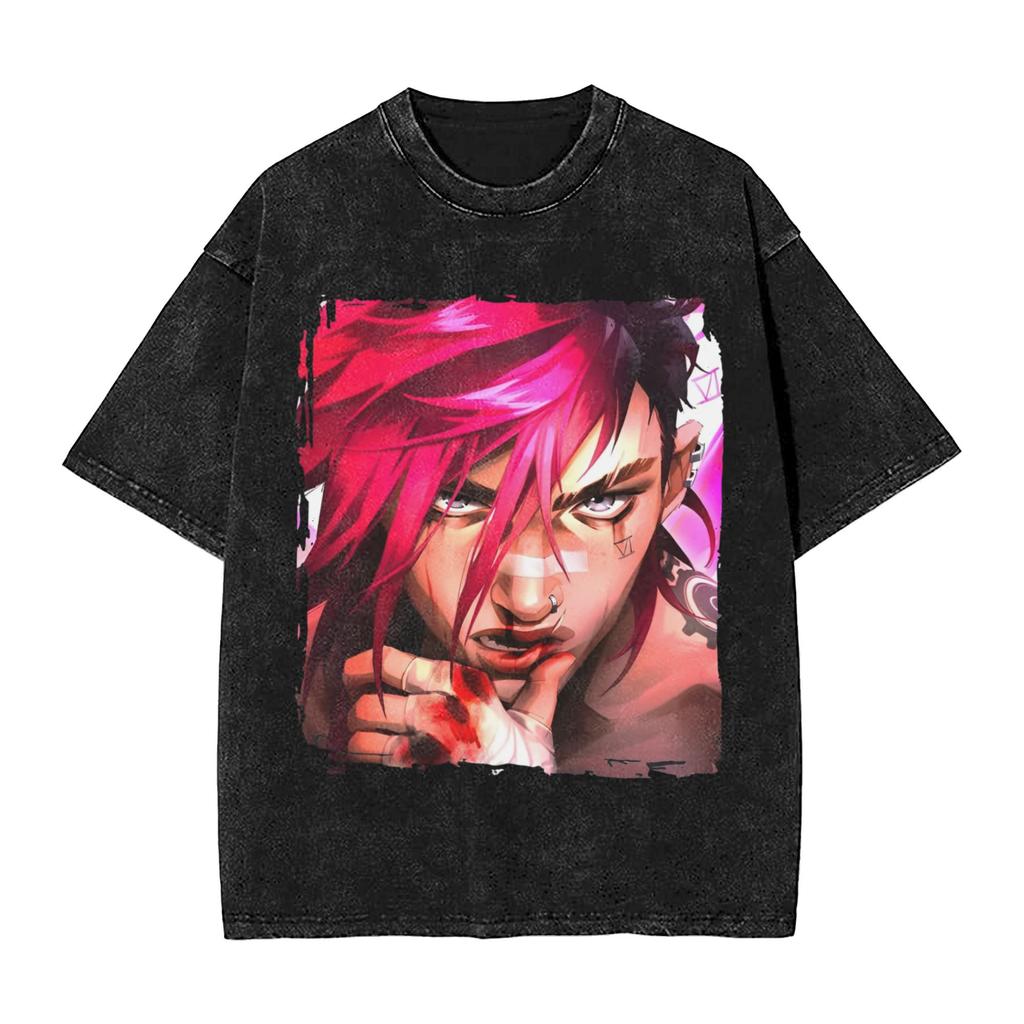 Аниме Аркейн Ви Игра Фиолетовая Принтованная Выстиранная Футболка Мужская Женская Футболки Манга Винтажная Хлопковая Футболка Харадзюку Мужская Футболка