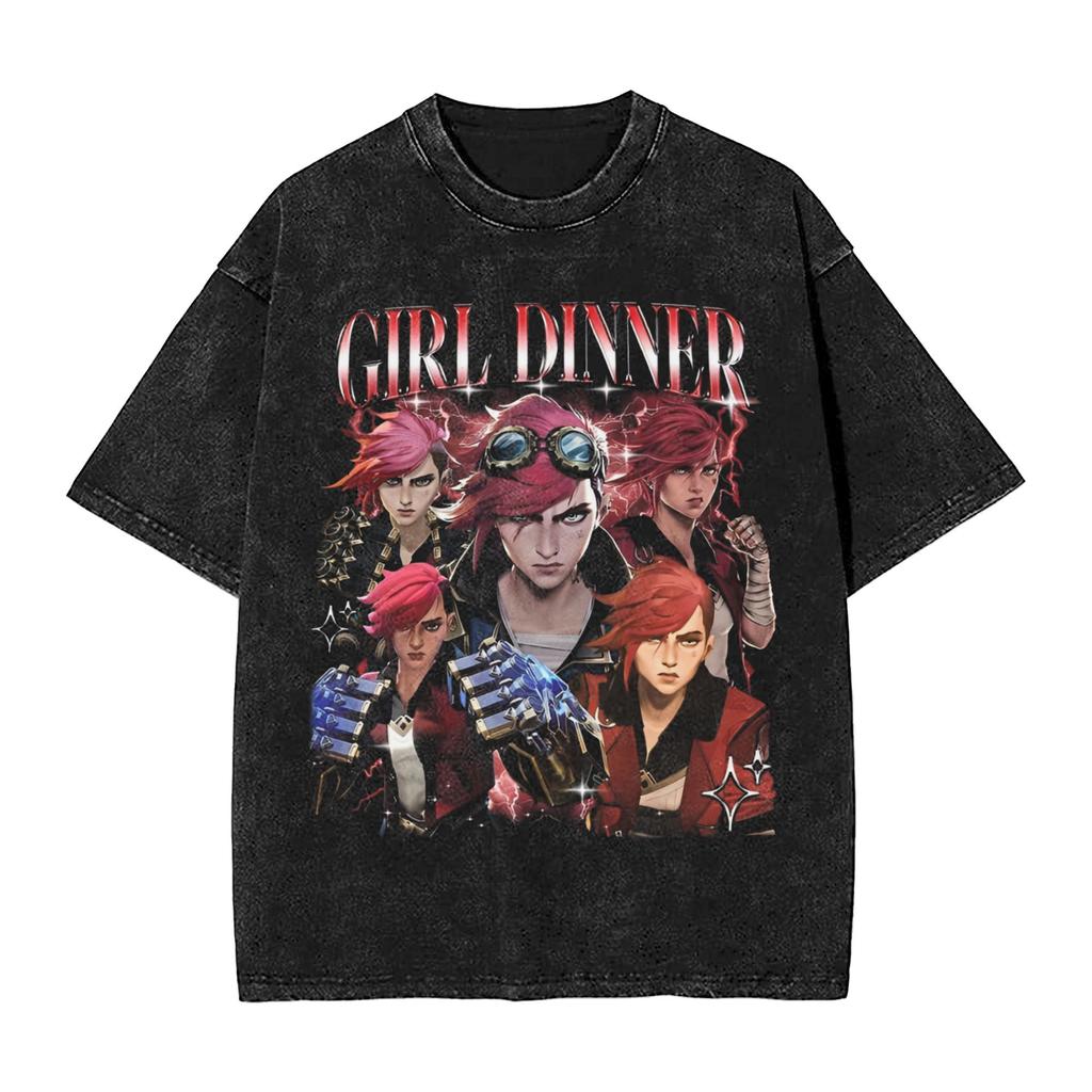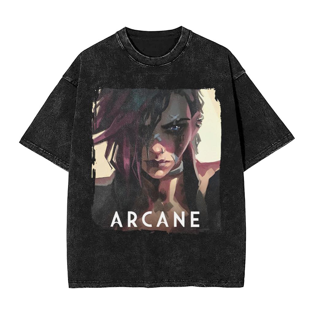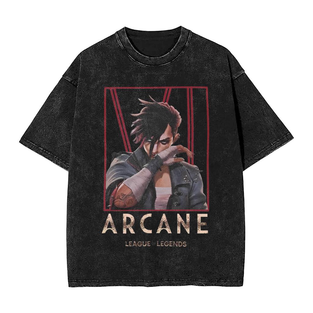 Аниме Аркейн Ви Игра Фиолетовая Принтованная Выстиранная Футболка Мужская Женская Футболки Манга Винтажная Хлопковая Футболка Харадзюку Мужская Футболка
