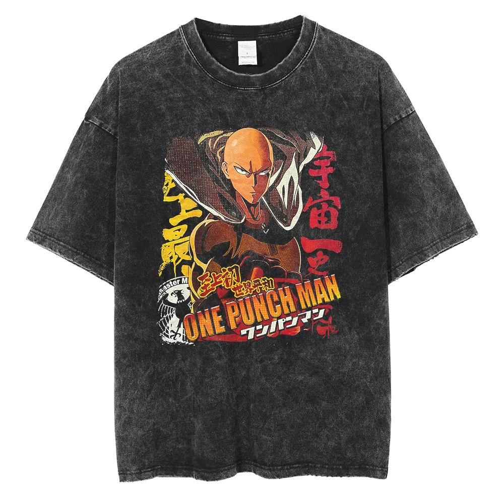 Аниме ONE PUNCH-MAN Сайтама Футболка с принтом Мужская Женская Футболки из стираного хлопка Футболка оверсайз Харадзюку Мужская Манга Винтажная футболка