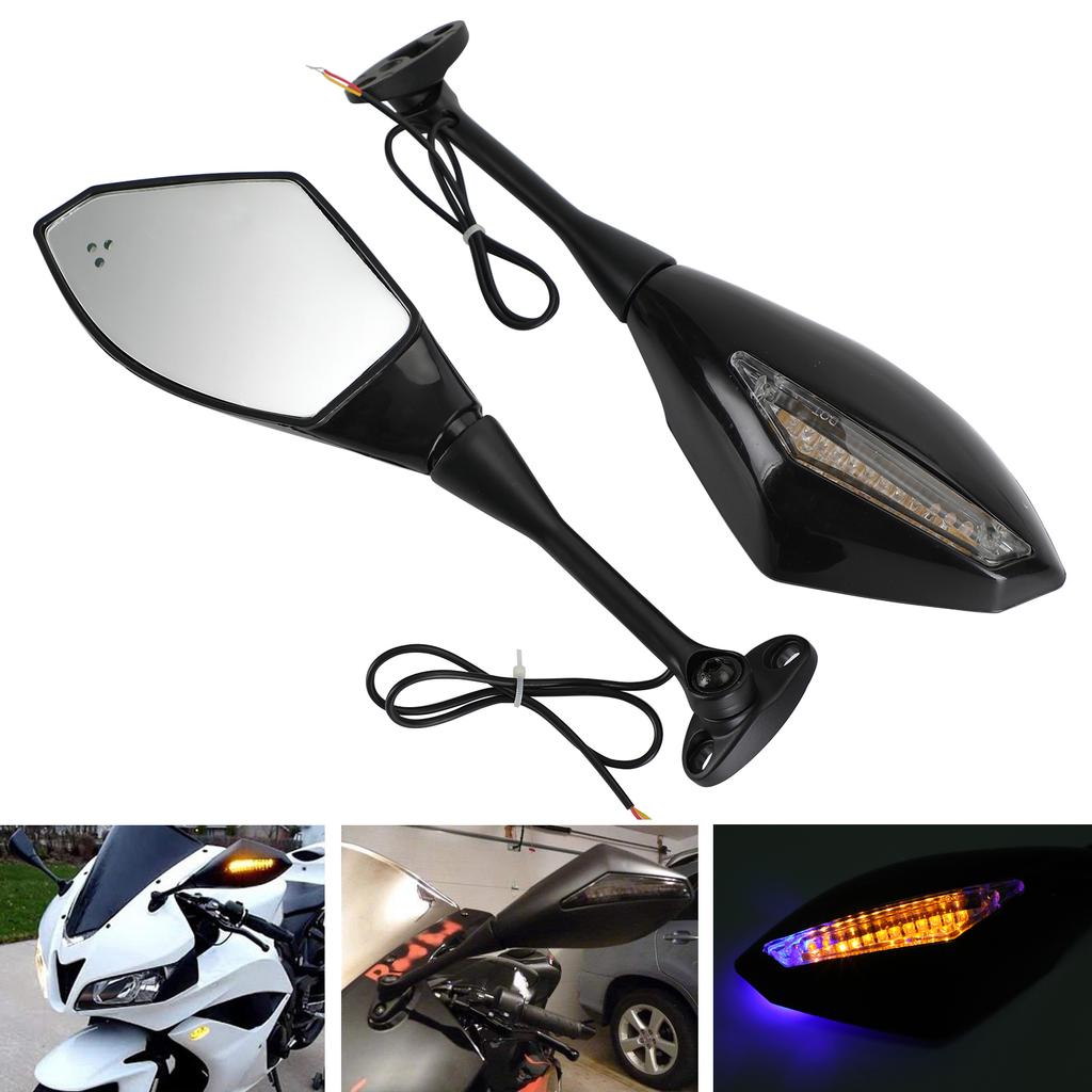 Черные боковые зеркала заднего вида со светодиодными указателями поворота для Honda CBR600RR 03-14 CBR1000RR 04-07 CBR250R CBR300R CBR500R 11-15
