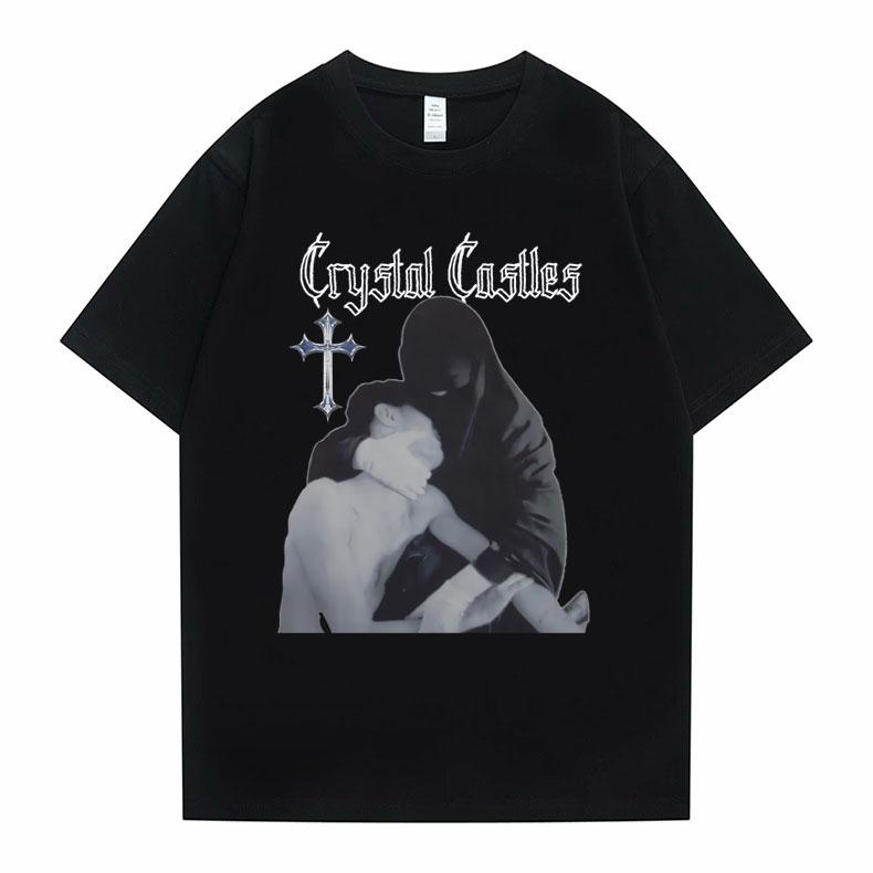 Футболки с графическим принтом Crystal Castles Мужские Женские Готические Рок Оверсайз Футболки Короткий Рукав Мужские Хип-Хоп Повседневные Винтажные Футболки