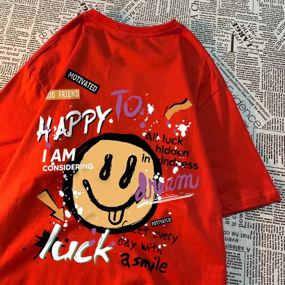 Футболка Happy To Dream Luck Smile для мужчин и женщин, высококачественные футболки с круглым вырезом, летняя свободная спортивная одежда из хлопка, дышащие футболки