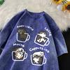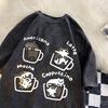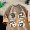Кошка Кофе Чистый Хлопок Модная Летняя Свободная Футболка с Коротким Рукавом Мужская Женская Мокко Латте Кошка Винтаж Водная Стирка Забавные Футболки с Кошкой