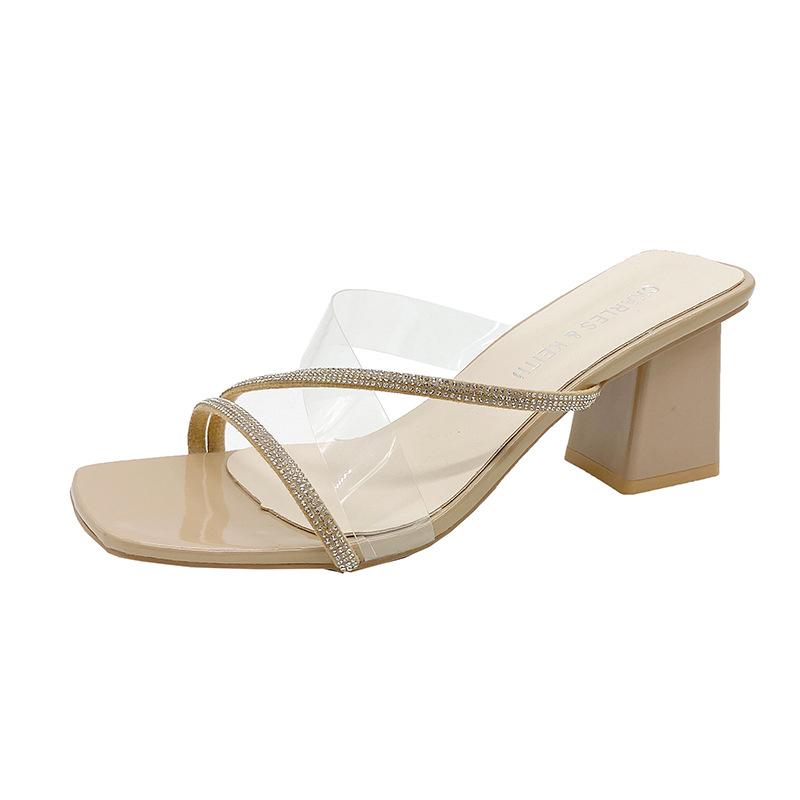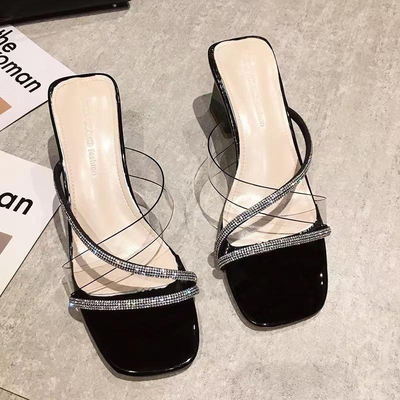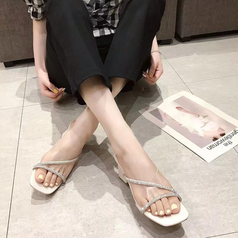 Летние новые женские тапочки на толстом каблуке, корейская версия простых модных прозрачных классных тапочек, полутапочки с квадратным носком