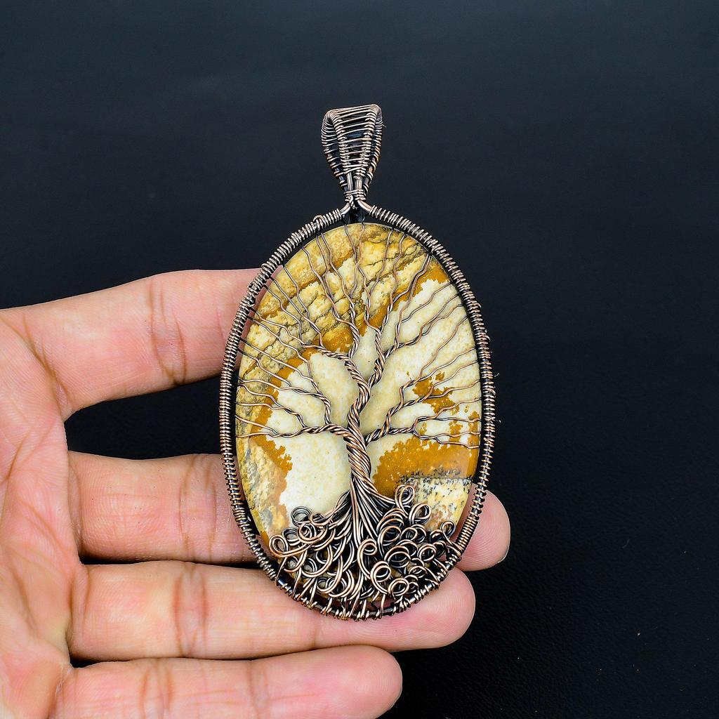 Подвеска из яшмы-картины, Подвеска Древо жизни , ручная работа, обмотка медной проволокой 999 пробы, антикварное украшение, для подарка, медное украшение — купить товар онлайн с бесплатной доставкой по всему миру!