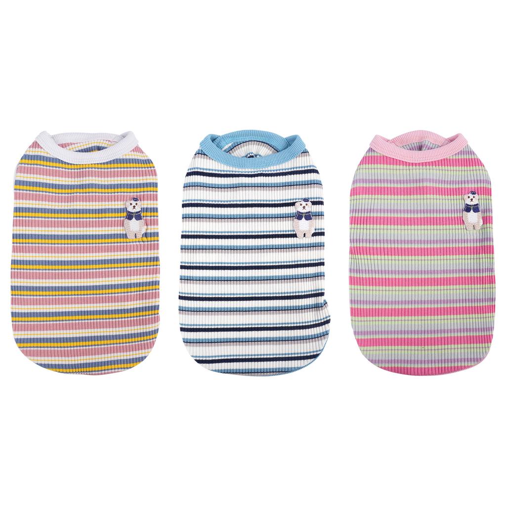 Pet spring and summer elastic stripe embroidery color matching outer wear vest Teddy Schnauzer than bear puppy dog clothes